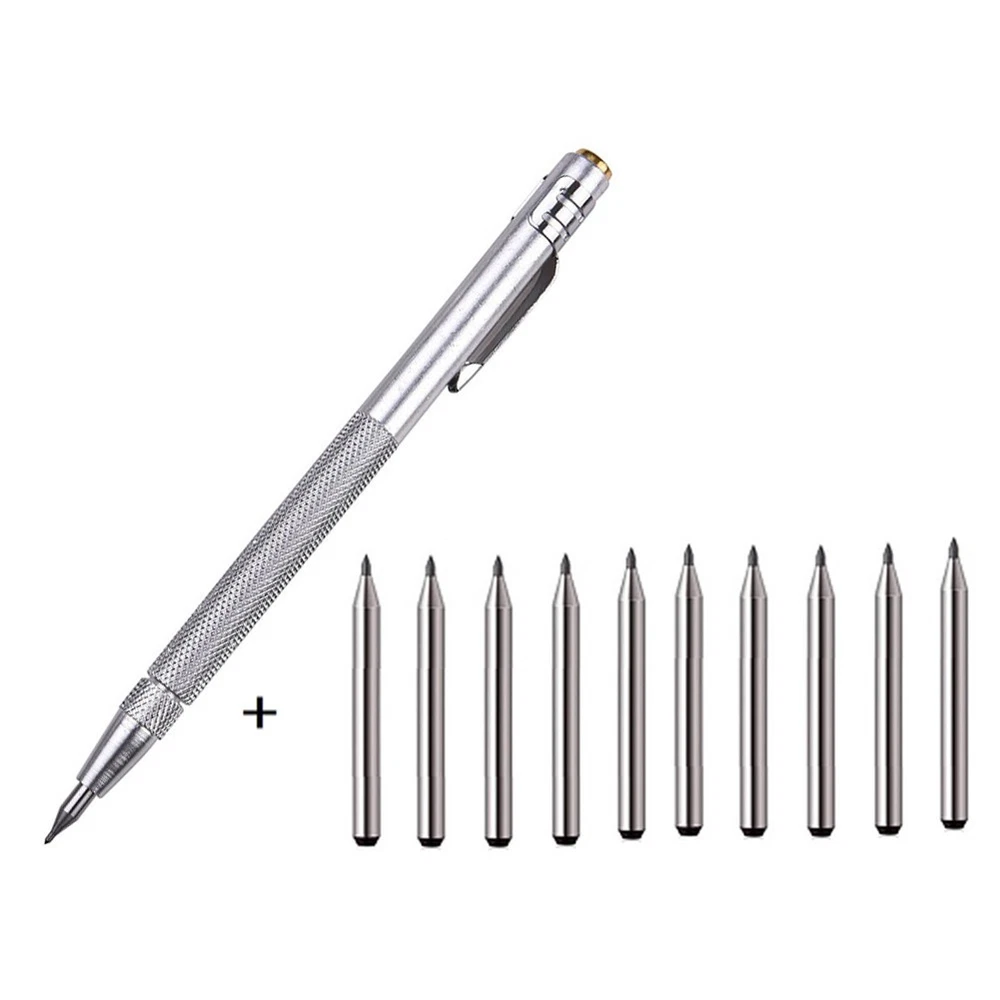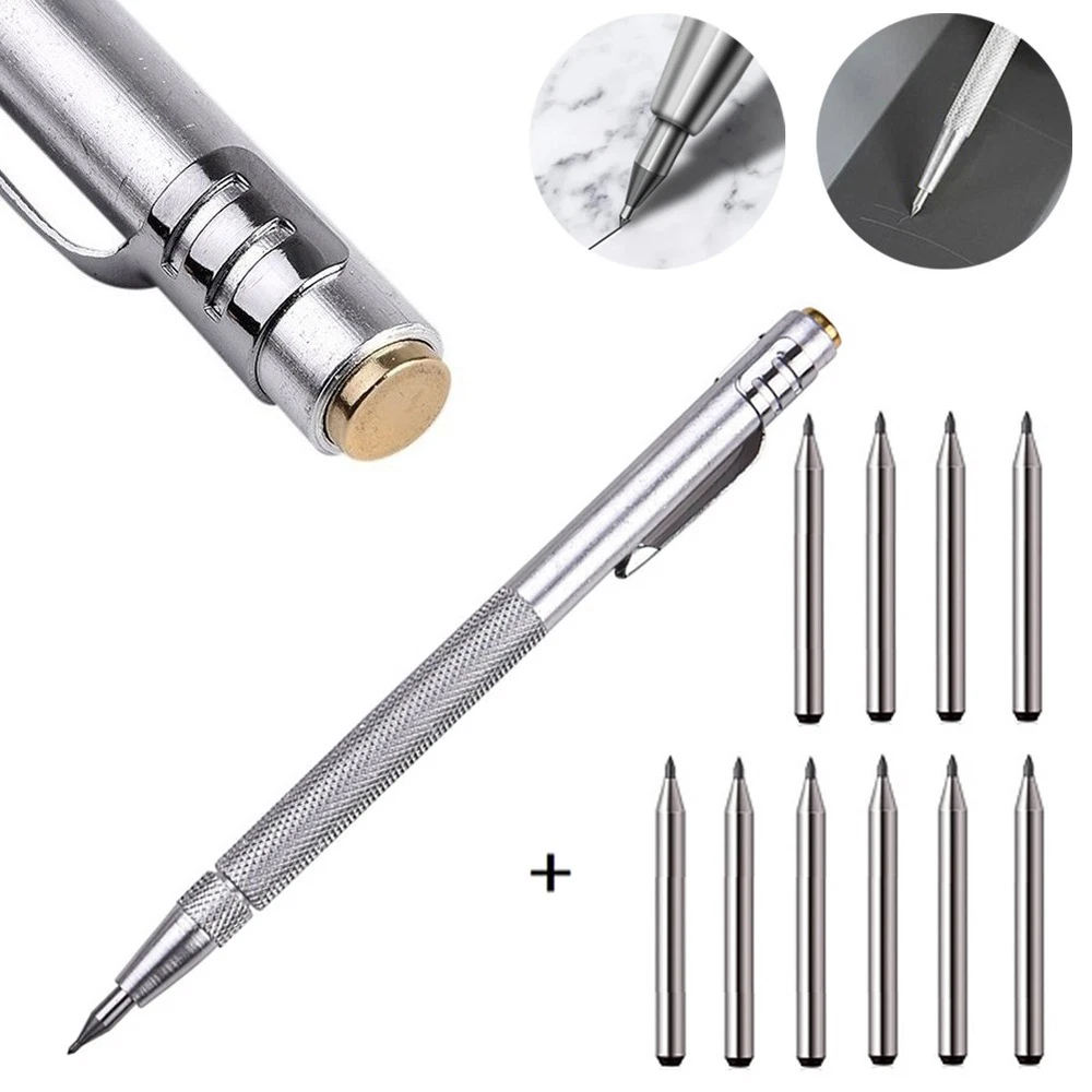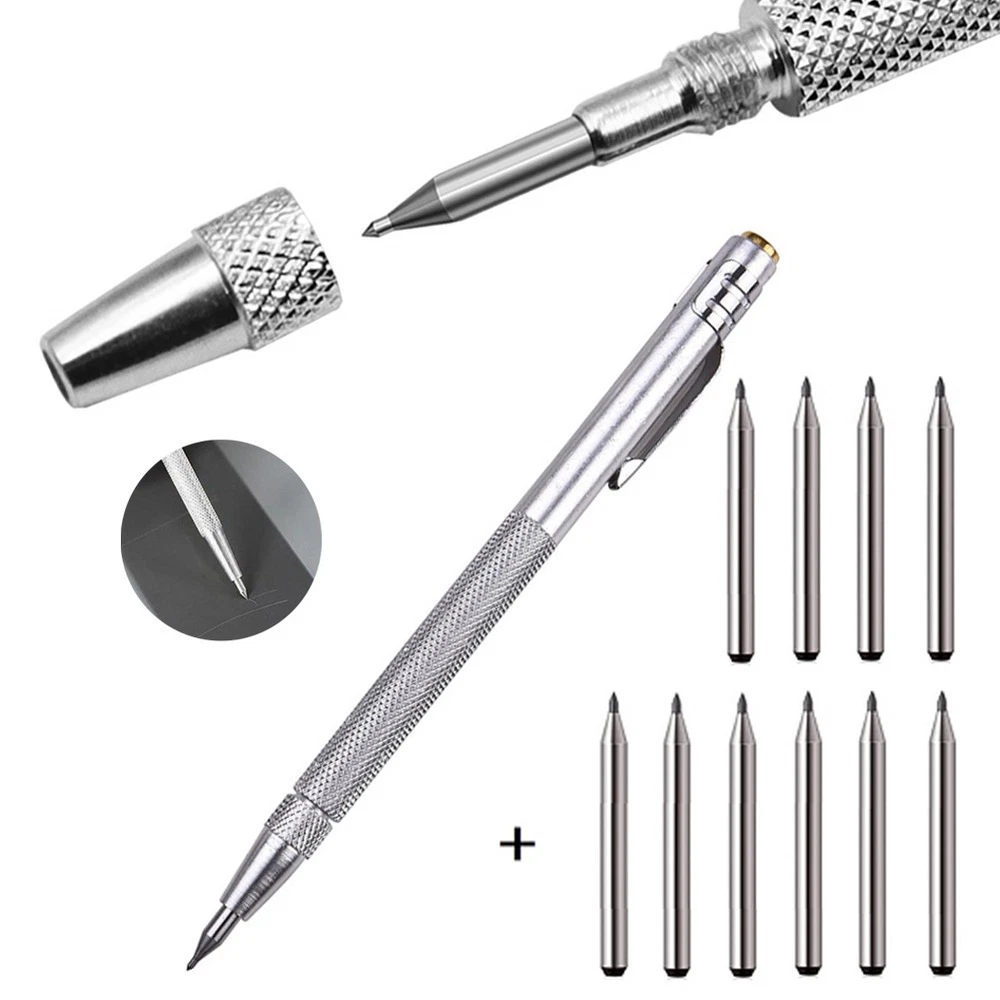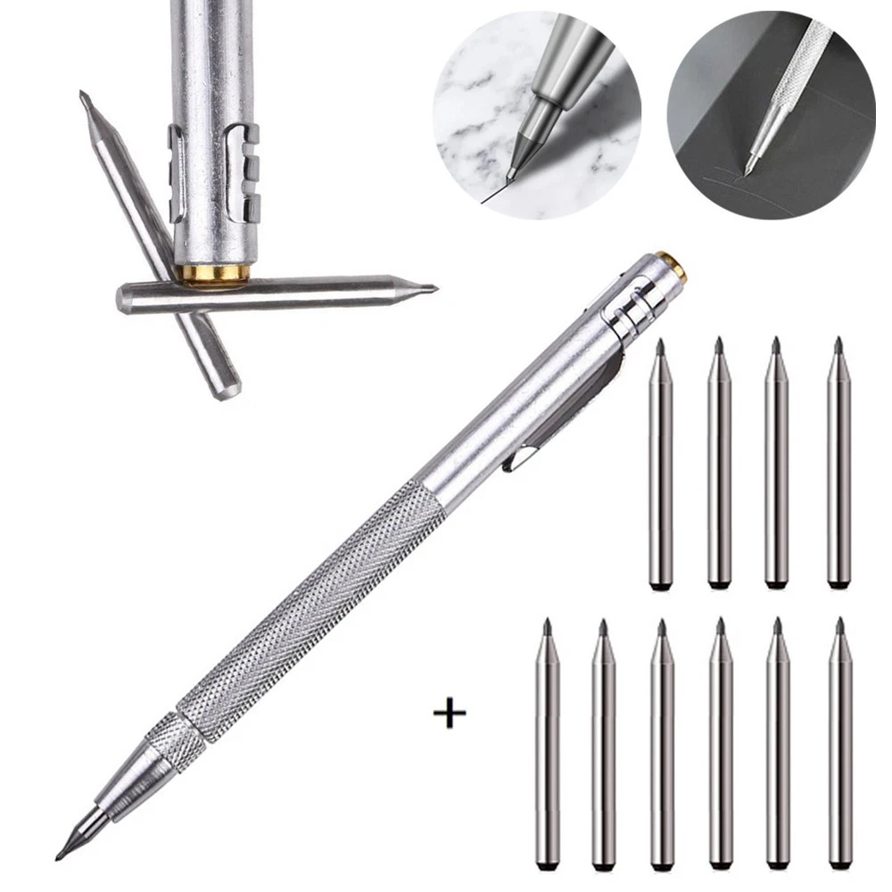 11-PCS Tungsten Carbide Tip Scriber Engraving Pen Marking Tip For- Glass Ceramic DESCRIPTION Feature: *The glass scribe features a tungsten carbide tip, aluminium body making it works effortlessly on hard materials including hardened steel, stainless steel, ceramic and glass. *The tungsten carbide tip is more than others, not easy to drop. *Magnet on this etching tool picks up small parts and retrieves steel chips from hard-to-reach places. *Comfort to Use: Handy pen-style design with convenient pocket clip, Knurled aluminum handle provides maximum control and comfort. *Easy to Store: Each Engraving pen comes with a chuck for reversing tungsten carbide point when not in use. Specification: *Product Name: Scriber Pen *Material: Tungsten carbide (tip), Aluminium (Pen) *Color: Silver *Length: approx. 14cm *Suitable for: Engraving metal sheet, stainless steel, ceramic and glass. Package Includes: 1 x Scriber pen 10 x Replacement carbide tip or 10PCS Replacement carbide tips Notes: 1.Transition: 1cm=10mm=0.39inch. 2. The real color of the item may be slightly different from the pictures shown on website caused by many factors such as brightness of your monitor and light brightness. 3. Please allow slight manual measurement deviation for the data. POLICES Shipping Payment WARRANTY We only ship to confirmed ebay Order addresses. Please comfirm that your Order address is in line with your shipping address. Please kindly note that the c ombined shipping is not provided because the shipping fee is calculated by weight. Also, the each additional item means exactly the the same color and size. It takes about 7 -15 working days to US; about 10-30 working days to other countries. Transit time may be a little delayed because of the bad weather and customs inspection . If you do not receive your item within 30 working days since payment finished, please contact us immediately for further assistance. Payment must be completed within 5 days. If you have any problems about payment, please contact us via ebay message. We strive for 100% customer satisfaction! Positive Feedback is very important to us. If you have any questions, p lease feel free to contact us via "Ask seller a question" . We will reply your email within 24 working hours.