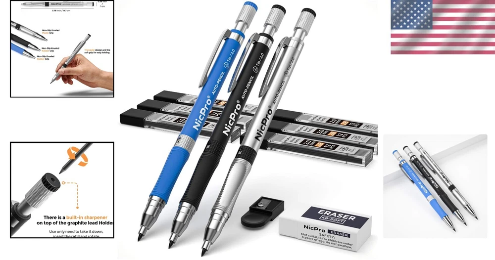 11-Piece Professional Mechanical Pencil Set: Perfect for Art and Drafting ‹ › ‹ › ‹ › ‹ › ‹ › ‹ › ‹ › ‹ › ‹ › 11-Piece Professional Mechanical Pencil Set Elevate your artistic and drafting experience with our meticulously curated 11-Piece Professional Mechanical Pencil Set, designed for discerning artists, professionals, teachers, and students. This value package includes everything you need to bring your creative visions to life. What's Inside: 3 Mechanical Pencils: Available in elegant blue, sophisticated black, and sleek silver. Lead Refills: 6 tubes of pre-sharpened lead refills in varying grades (HB, 2B), totaling 72 pieces for endless creative potential. Eraser & Sharpener: Includes a high-quality eraser and a handy sharpener with a built-in cap for easy sharpening on the go. Unmatched Quality: Break-Resistant Leads: Engineered for durability, our graphite leads promise a smooth, vibrant, and clean writing experience. Comfort-Driven Design: With a rubber grip, these pencils ensure a lightweight balance and a comfortable, non-slip hold, allowing for extended creative sessions. Innovative Advancement: Easily advance the graphite lead with a simple rear click for uninterrupted creativity. Why Choose Our Professional Mechanical Pencil Set? This exceptional pencil set is ideally suited for all forms of creativity—whether you’re drafting precise lines, sketching intricate designs, or crafting beautifully written notes. Each component of this set has been thoughtfully included to offer you seamless functionality and high performance. 100% Risk-Free Purchase: We stand behind our product with a satisfaction guarantee. If you’re not completely satisfied with your purchase, we are more than happy to provide a no-questions-asked refund or replacement. Explore your creativity without any risk—order your 11-Piece Professional Mechanical Pencil Set today! Shipping Free & Fast Shipping - We offer free shipping to most of the USA with a normal delivery time of 3-7 days. However, due to the current situation, additional delivery time (up to 3 weeks) may be required for some items. Alternative Carriers - We may use alternative carriers (e.g. USPS, FedEx, UPS, etc.) to ensure your package arrives safely and on time. Due to the use of multiple carriers, we are unable to provide a tracking number automatically. Handling Time - Orders are processed and shipped within 1-2 business days of receiving cleared payment. Shipping Restrictions - Shipping to Alaska, Hawaii, Puerto Rico, Guam, and other US territories may incur shipping charges or delivery restrictions. Please contact us before ordering, or your order can be refunded/cancelled. State Restrictions - There may be restrictions based on your state of purchase. For example, certain items may not be shipped to California due to state regulations. Contact for Tracking Updates - If you require tracking updates or have any concerns about the delivery of your order, please feel free to contact us, and we will be happy to assist you. Return 30-Day Hassle-Free Returns - We want you to be completely satisfied with your purchase. If you are not, you can return the item within 30 days of receiving it for a full refund or exchange. Easy Return Process - To start a return, simply contact us and we will provide you with a prepaid return shipping label and detailed instructions. Restocking Fee - There are no restocking fees for returns. However, the buyer is responsible for return shipping costs if the return is not due to a seller's error. Refund Processing Time - Refunds will be processed within 5 business days of receiving the returned item in its original condition. Payment We accept all major credit cards, PayPal, and Apple Pay for your convenience. Your payment information is secure and encrypted to ensure a safe and seamless transaction. Please complete your payment within 3 days of purchase to avoid any delays in shipping. Feedback Your feedback is extremely important to us. We strive to provide the best products and customer service possible. If you are satisfied with your purchase, please take a moment to leave us a positive review. If you have any concerns or issues with your order, please contact us before leaving negative feedback. We are committed to resolving any problems and ensuring your satisfaction. Contact Us If you have any questions or concerns, please feel free to reach out to our customer support team. You can contact us through the eBay messaging system. We are available Monday to Friday, 9:00 am to 5:00 pm EST, and we will do our best to respond to your inquiry within 24 hours. Buy it now and enjoy a pleasant shopping experience! Features: Lead Protection Sleeve,Retractable Tip,Retractable,Comfortable non-slip grip,Lightweight balance,Break resistant,Sharpener included in cap Brand: Unbranded Lead Diameter: 2.0 mm Type: Mechanical Pencil Material: Rubber Lead Grade: HB Country/Region of Manufacture: Not Set Vintage: Not Set