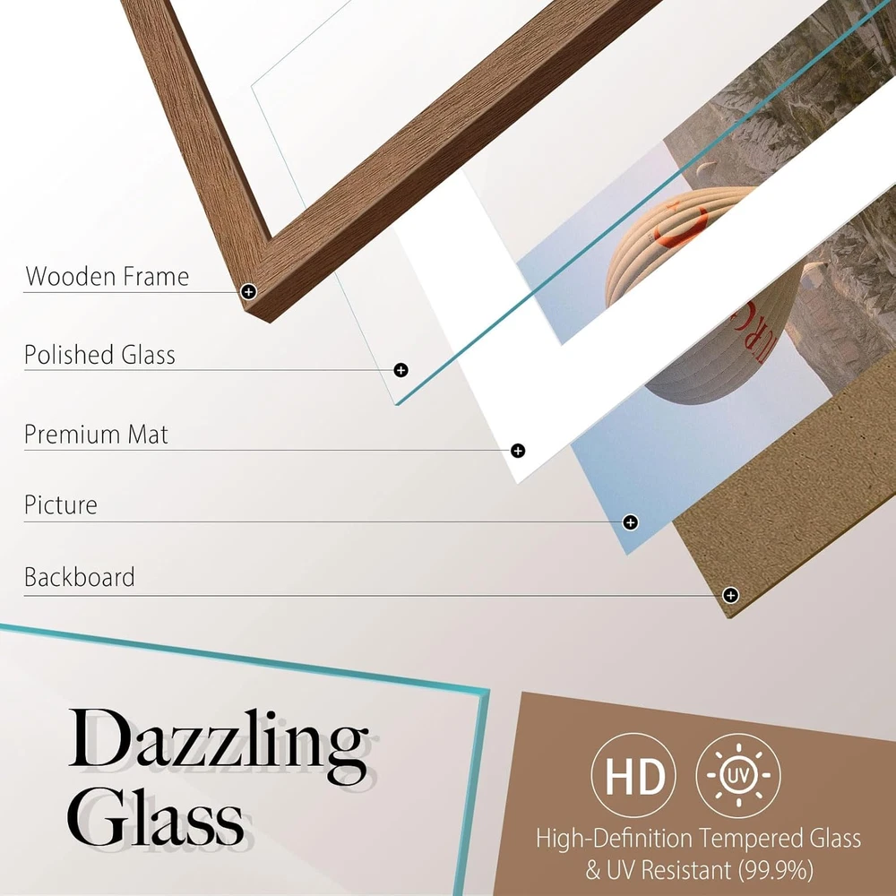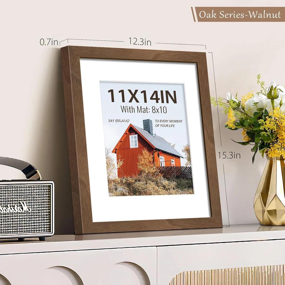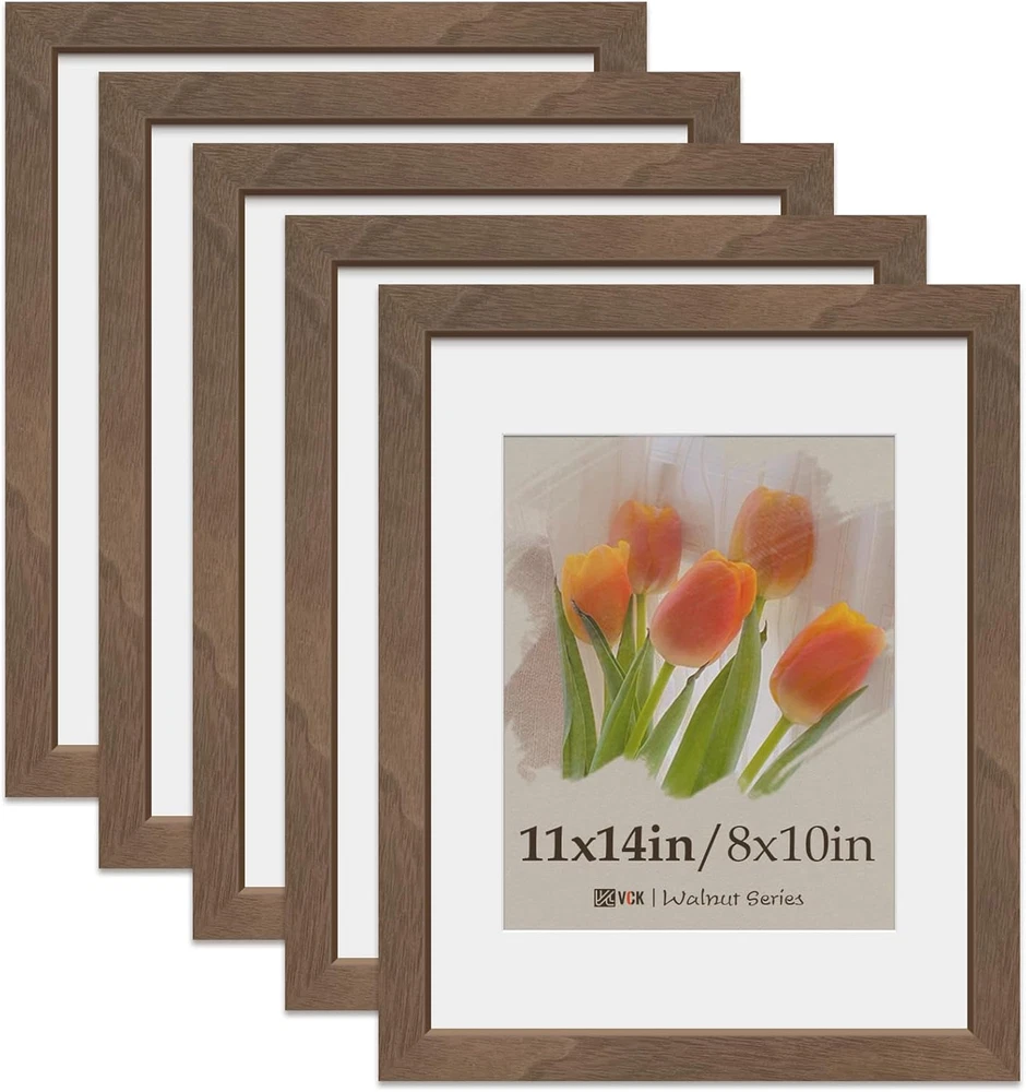 11X14 Picture Frame 5 Pack, Natural Wood Grain Brown Walnut & HD Glass, Display