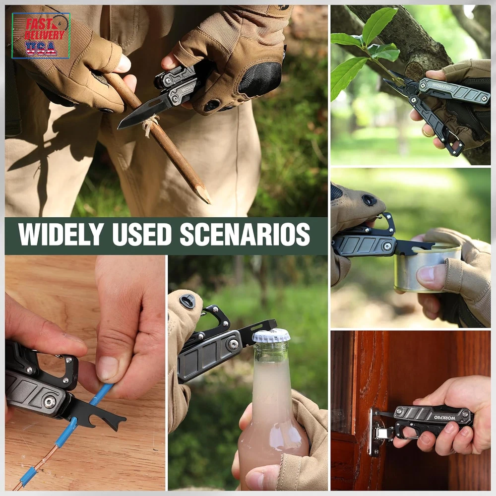 Store New Arrivals Add to Favorite View Feedback Contact Multitool-11 in 1 Multitool Pliers with Pocket Clip and Sheath-Edc Multi Tool Knives with Safety Lock-Camping Tools Pocket Knife with Screwdriver Saw Blade Wire Cutter and Bottle Opener Description Item model number W000326A Part Number 1 Item dimensions L x W x H 2.68 x 1.5 x 5.31 inches Color Green Included Components Plier Material Metal Batteries Required? No Item Weight 220 Grams Batteries Included? No Number of Pieces 1 Product Dimensions 2.68 x 1.5 x 5.31 inches All-in-One Multitool Pliers: We've crafted this multipurpose tool to include long and regular pliers, a wire cutter, a saw, a knife, a Phillips screwdriver, a slotted screwdriver, a wire stripper, a bottle opener, a can opener, and a carabiner (not suitable for climbing). It's the perfect solution for all your daily needs Safety Locking Mechanism: Our pocket tool features safety liner locking parts that ensure the secure use of tool components, such as the knife and saw blade, which could potentially be hazardous if not fully locked. You can have complete confidence in this versatile gadget, thanks to its robust safety features Portable Sheath and Pocket Clip: When going outside for work, camping, or hiking, simply grab the pocket multitool and place it in the nylon sheath, which can be attached to your belt or bag. Alternatively, you can easily clip the multitool to your pocket Ideal Gift for Men: Surprise your husband, boyfriend, or dad with this multipurpose gear that allows for single-hand operation. It's an ideal birthday gift for both men and women and makes for a fantastic addition to Christmas stocking stuffers Versatile Pliers: This stainless steel multi-tool is adaptable to various aspects of your life! Whether you're camping, hiking, hunting, or engaging in outdoor activities, it's indispensable. Additionally, it serves as an excellent survival tool for your outdoor adventures and a valuable addition to your everyday carry (EDC) for home improvement tasks Product Description 1 OUTDOOR MULTI-TOOLS 2 PORTABLE SHEATH 3 PREMIUM QUALITY 4 WIDE USE TOOLS ABOUT US We offer the best prices around on high quality products. Our E-store includes media such as books, movies, music and games while offering electronics, toys, sporting apparel, clothing, tools, general home, garden items and more. SHIPPING We are always working hard to ensure your package arrives as soon as possible. Please understand that some factors like weather, high postal traffic, and the performance of shipping companies are outside of our control. We offer free shipping to the lower 48 states and ship within 2 business days of payment, usually sooner. We do not accept P.O. Boxes. Please provide a physical address. For shipping outside of the continental USA, we only use eBay's Global Shipping Program.The item is shipped to KY and then sent to the rest of the world. International customers are responsible for all duties and taxes. Continue to check out in order to calculate costs for shipping the item to your country. Messages regarding eBay's Global Shipping Program MUST be directed at eBay EXCLUSIVELY. RETURNS We offer a 30-Day Return Policy on items which you are not completely satisfied with. You have the option for a full-refund or an exchange of the item. No returns are available on items shipped outside of the USA. PAYMENT We accept PayPal. CONTACT US This page content is yet to come Please ad us to your favorite seller and visit again later Thank You CUSTOMER SATISFACTION We try our very best to make sure every customer is completely satisfied. If there's a problem, message us! We're happy to help. WE ACCEPT Copyright © 2021 AutoDS. | All Rights Reserved