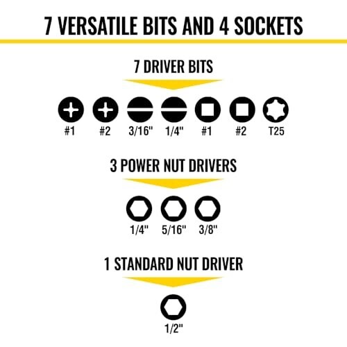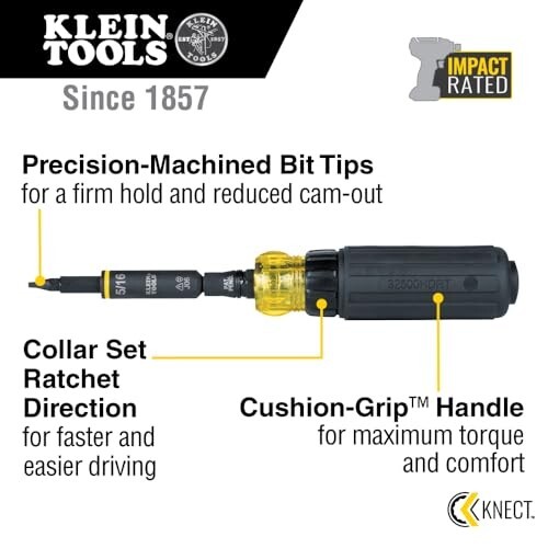 11-in-1 Ratcheting Screwdriver and Nut Driver: Experience unparalleled versatility with this 11-in-1 ratcheting screwdriver and nut driver, designed to tackle a wide range of tasks with ease. This impact-rated tool includes seven driver bits, three power nut drivers, and one standard nut driver, making it an essential addition to any toolkit. The ratcheting handle allows you to adjust the collar for forward, fixed, or reverse settings, ensuring faster and more efficient driving. Seamlessly switch between a screwdriver handle and an impact driver with the convenient 1/4-inch quick-connect feature on the power nut drivers. Built for heavy-duty applications, the shaft and bits are impact rated, while precision-machined bit tips provide a firm hold and minimize cam-out. Equipped with the most common drive ends—#1, #2 Phillips; 3/16-inch, 1/4-inch slotted; #1, #2 square; T25 TORX; and 1/4-inch, 5/16-inch, 3/8-inch, 1/2-inch hex—this tool is ready for any challenge. The cushion-grip handle ensures enhanced comfort and maximum torque during use, making your projects smoother and more enjoyable.