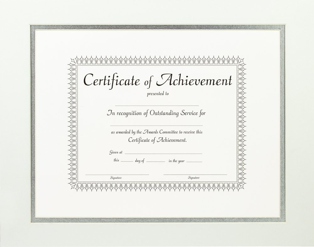 This brand new picture frame with double matting is manufactured in the USA at our facility in Ithaca, Michigan. Please Review the product listing details of the frame selection you have made. Our picture frames smaller than 12x18 inches (inside dimensions) are carefully and completely assembled with glass facing and a durable backing with machine-cut, low profile wall hangers for both horizontal and vertical hanging. Our picture frames will compliment any space that you hang them in, they make great gifts and they will protect and display your documents, photographs and artwork for years to come. If you have any questions or comments, please do not hesitate to us. Feel free to visit our storefront and seller info pages to browse our extensive selection of frames, read customer feedback or Review our policies and info. At the end of the day we want you to be completely happy with your purchase. Be sure to add us to your list of favorites so you can easily find us the next time you need a quality picture frame. Thank you for shopping with us. We are and we are framing the world.customer at a time. Display your achievements, certifications and memories with our framed single opening mats Complete framed matting kit includes: picture frame, double matting, glass, rigid black backing and pre-attached stamped hanging hardware Double matting has .25 inch reveal. Mat opening is designed to fit an 8.5 x 11 inch document. There will be approximately quarter inch of matting overlapping the document on each side (actual mat opening is 8 x 10.5 inches). The overlap is necessary to prevent the document from falling through the mat opening. Frame moulding is 1.47 inches wide; black and mahogany; ornate finish; solid wood core Each mat is .05 inches thick; cream core; pH neutral; bevel cut openings