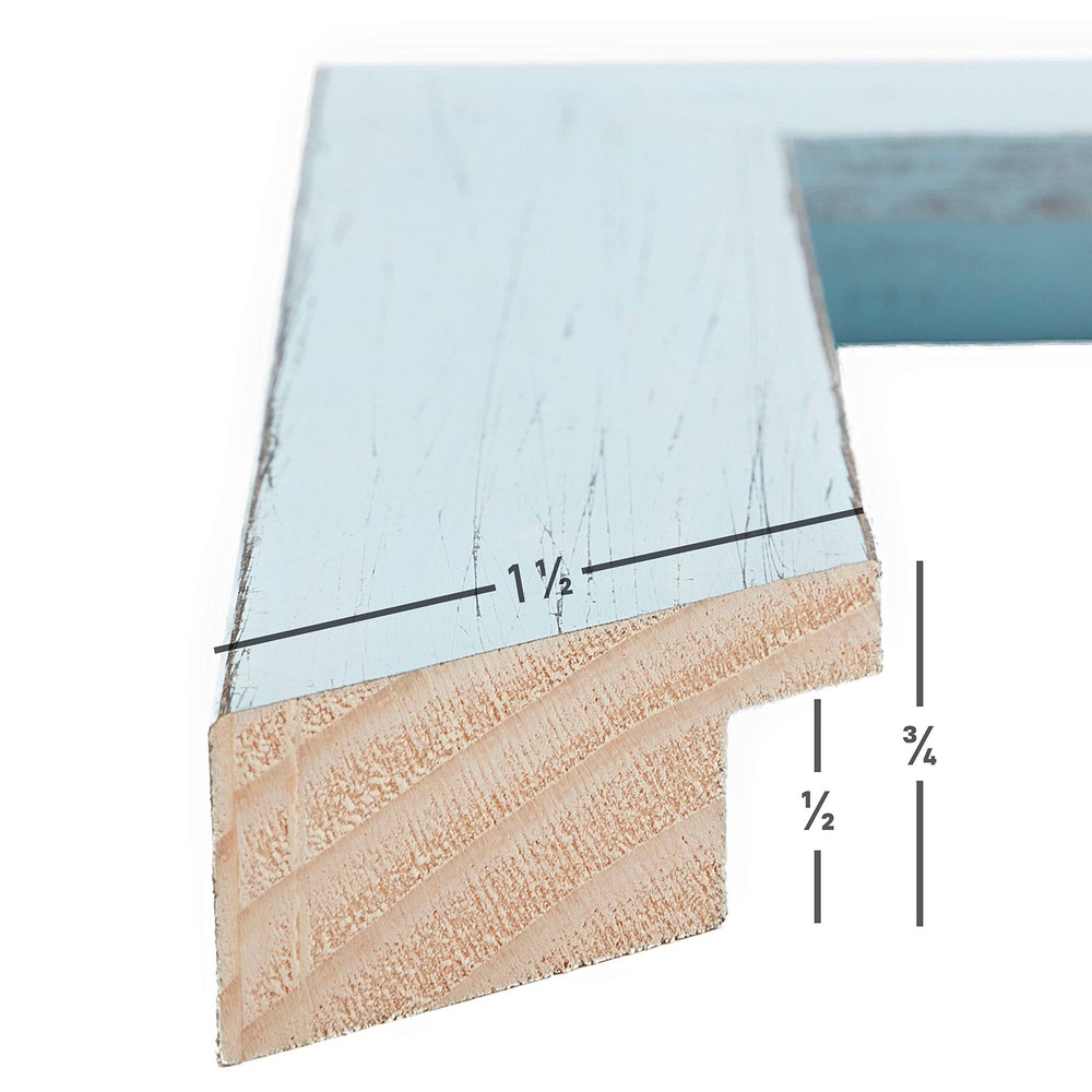 Rustic style; weathered light blue with visible wood grain; painted finish **IMPORTANT** THIS IS A NATURAL WOOD PRODUCT. WE CANNOT CONTROL VARIATIONS IN COLOR OR GRAIN PATTERN. Frame includes: glass, rigid black backing and pre-attached stamped hanging hardware Frame holds a 11 by 14-Inch photo/print/poster (viewable area reduced by .25" on each side due to frame lip) Frame moulding is 1.5 inches wide; solid wood construction Frame is designed for WALL HANGING only (hanging hardware allows for portrait or landscape orientation)