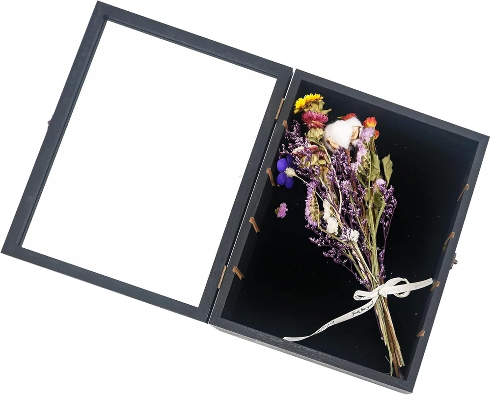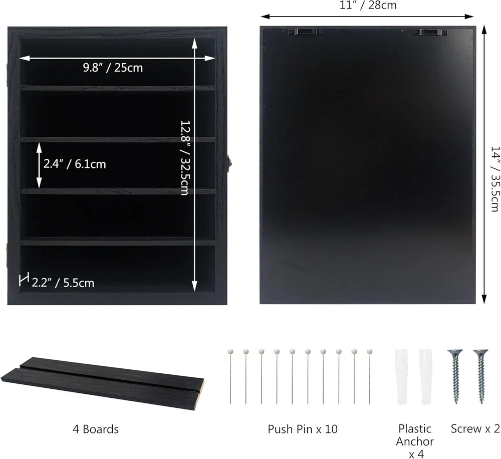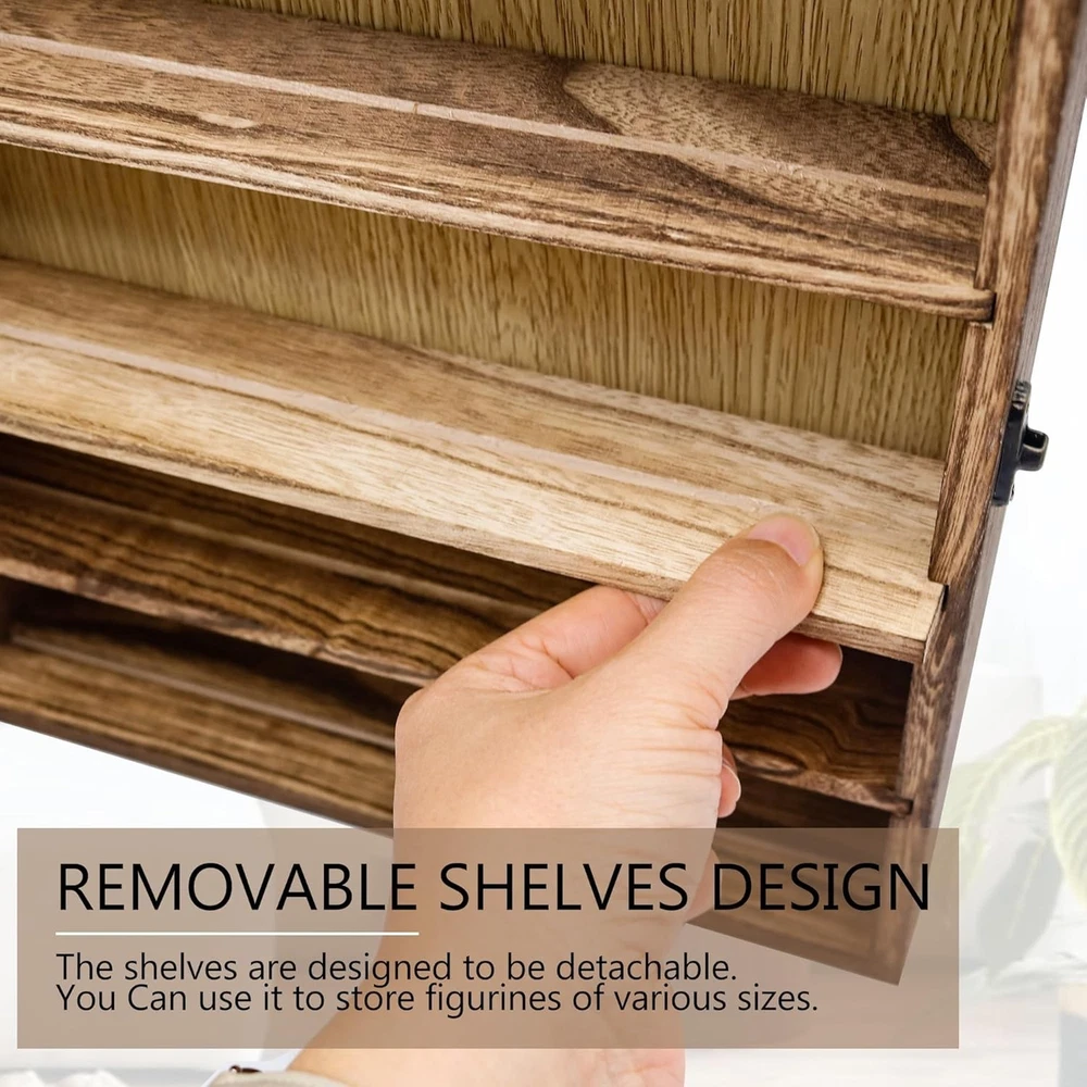 Wood Hodeframe Shadow Box With Shelves:Hodeframe trinket shelf with a crystal clear real glass front, the box gives you a great overview of the contents inside. You can use it to organize jewelry stands, miniature collectible items, eyewear, sunglasses, toys, figurines, and other collections Material & Size:Hodeframe shadow box frame is made of solid wood and high-quality shatterproof real glass, which is more anti-aging and anti-deformation,whole size of this display case is inner 11"x14"x2.8", size of deep depth shadow box is 9.7"x12.6"x2.2". Unique Design: The rustic shadow boxes display cases has 4 removable shelves. You are free to remove or put on the shelves, it turns into a wood shadow box or display shelf that can hold items of different heights. The shadow box frame with glass is great for storing collectibles! DIY Memory Display Box: Shadow box with shelves is perfect for storing your beloved items, suitable for displaying souvenirs, photos, miniatures, dried flowers, wedding bouquets, antiques, military, tickets, medals, crafts and other collectibles, DIY, a great way to display your precious memories. Super Gift: The large shelf shadow box is ideal gift for Valentine's Day,Mothers Day,Father's Day,Thanksgiving Day,Valentine's Day and Christmas, and the deep shadow box with shelves is the best gift for Friends,Anniversary,Wedding,Engagement and Birthday.