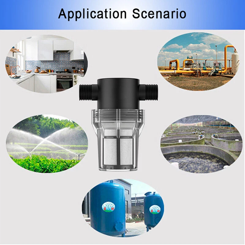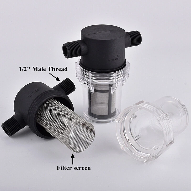 Description: Product Name: Water Pipe Filter Material: PC Color: Black + Transparent Threaded Interface: External thread Interface Size: 4-point Interface (1/2 inch), 6-point Interface (3/4 inch) Filter Mesh: 40 mesh, 80 mesh Uses: Suitable for garden irrigation, car washing, fish tanks, water tanks, etc. Features: The size of the 40 mesh and 80 mesh filters is moderate, and the flow rate will not be affected when filtering impurities. In winter or in the sun for a long time, please put a protective cover on the surface of the filter to prevent the shell from bursting. The garden hose filter is small in size, easy to clean and reuse, no need to replace it for a long time. The filter is available in several different sizes: 1/2 inch, 3/4 inch. The filter is suitable for garden hoses, pressure washers and RVs, which can effectively filter out impurities and increase the life of water equipment. Package includes: 1 X Water Pipe Filter Notice: 1. Transition: 1cm=10mm=0.39inch 2. Please allow 0-3cm error due to manual measurement. Please make sure you do not mind before bidding. 3. Due to the difference between different monitors, the picture may not reflect the actual color of the item. Thanks!