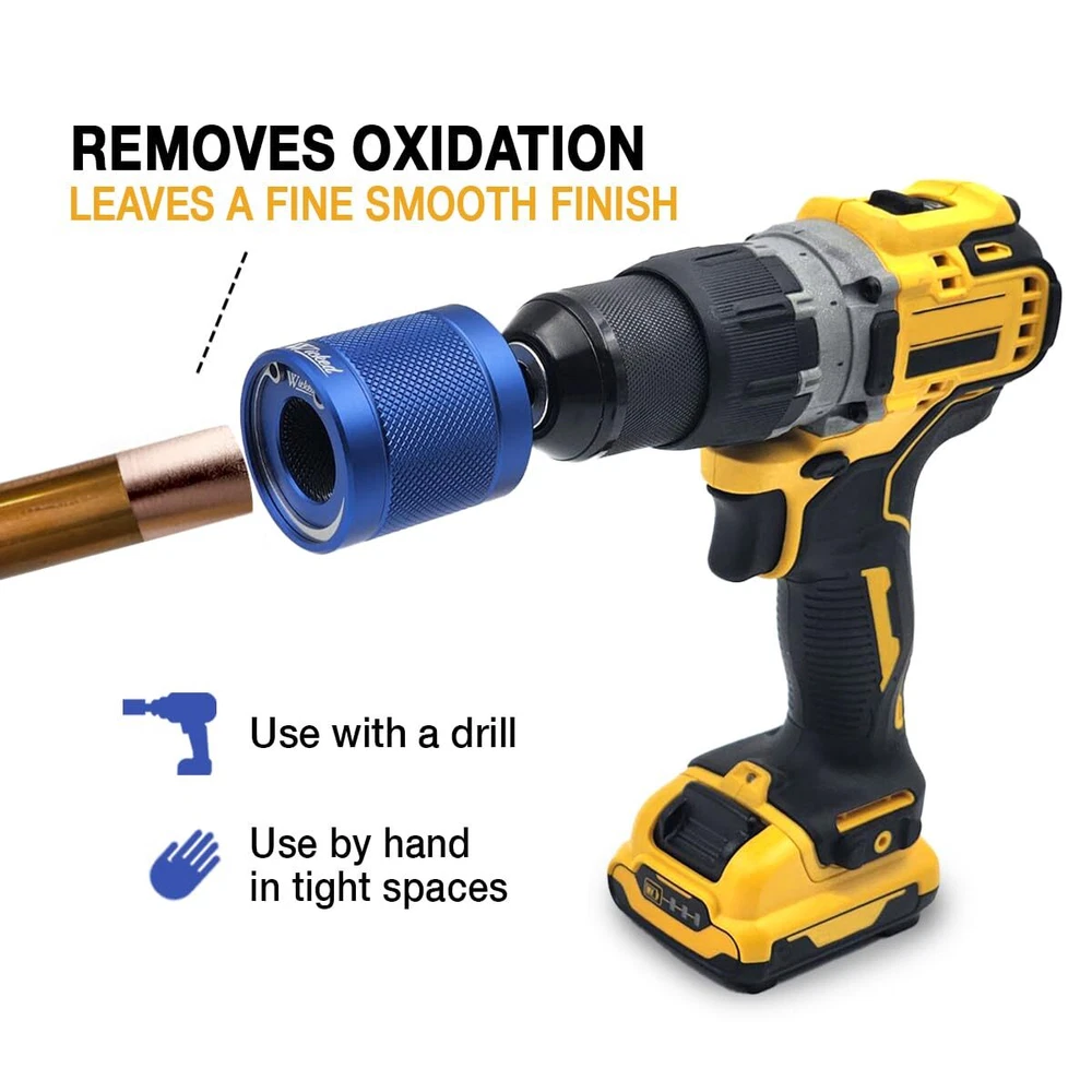 1/2’’ Copper Pipe Cleaner, The Original Fully Repairable Extreme Duty, Professional Plumber’s Tool, Industrial Strength Aircraft Grade Aluminum, Tradesmen Quality/Durability ✅ [Tradesman Quality]: The “” Brand Professional Copper Pipe Cleaner has a precision machined aircraft aluminum housing, with a removable tool steel hex shank. Includes durable 304 stainless-steel brushes and absolutely no plastic parts. This is a professional tool for tradesmen. ✅ [Built to Last]: is the original fully repairable OEM Copper pipe cleaning tool, expertly designed by trades professionals for all industrial and residential plumbing applications. Superior form, fit and function to outperform knockoffs. Trust the innovator not the imitator. ✅ [Multifunctional Versatility]: Specifically designed for multi-use; this kit can be utilized with a power drill if your work scope is large, or alternatively, it can comfortably be operated by hand if it’s just a one-off application or in the case of tight spaces or in obstructed areas. ✅ [Engineered for Tradesman]: Repetitive production work generates extreme heat from friction. Our unique brush materials and aluminum alloy body design work together to dissipate this heat for continuous operations. Our in house designed 304 stainless steel brushes are designed to remove dirt & oxidation while leaving a perfectly smooth finish for optimal solder flow. ✅ [Replaceable Parts]: All plumbers are expert repairmen! The tools they use should also be repairable for any wear parts. The pipe cleaning kit is completely repairable in minutes and offers a 20-year on all but the replaceable brush parts. Additionally, the tool can be used with regular key chucks, chuck adapters and keyless chucks, not for use with impact drivers. Shipping We offer FREE shipping on all orders! We ship within Three business days of payment, usually sooner. We use a selection of shipping services such as UPS, FedEx, USPS etc. We only ship to the lower 48 states, no APO/FPO addresses or PO Boxes allowed. Local pickups and combined shipping options are not provided at this time. Return You can return a product for up to 30 days from the date you purchased it. Any product you return must be in the same condition you received it and in the original packaging. Please keep the receipt. Payment We accept payment by any of the following methods: PayPal Please pay as soon as possible after winning an auction, as that will allow us to post your item to you sooner! Feedback Customer satisfaction is very important to us. If you have any problem with your order, please contact us and we will do our best to make you satisfied. Contact Us If you have any queries, please contact us via ebay. We usually respond within 24 hours on weekdays. Please visit our eBay store to check out other items for sale! Thank you for shopping at our store.