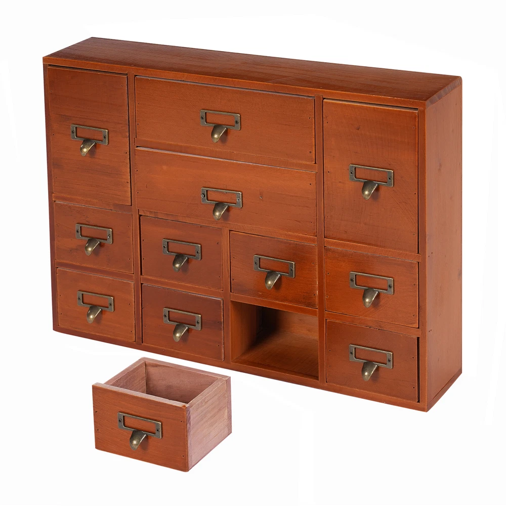 Specification Color: Brown Shape: Rectangular Mount Type: Tabletop Assembly Required: No Number of Drawers: 12 Material: Plywood, Pine Wood, Zinc Alloy Process: Spray Painting, Aging Indoor/Outdoor Usage: Indoor Load Capacity: 10kg/22.05lbs Package Size: 54*38*14cm/21.26*14.96*5.51in Product Size: 51*10*35cm/20.08*3.94*13.78in Gross Weight: 5kg/11.02lbs Net Weight: 4.5kg/9.92lbs Package Included 1* Desktop Drawer Organizer Welcome to the goforbigsales! Description Do you feel annoyed by too many cluttered and unorganized items on your desktop? Our desktop drawer organizer can help you solve this problem. This product is made of high-quality plywood, which is moisture-proof, sturdy, and durable. The 12 drawers are convenient for you to organize different daily items. Our product can effectively help you reduce the pressure on your countertop, which is an ideal choice for you. Key Features Selected Material: The premium plywood and pine wood with spraying painting and aging processes make this product durable, environmentally friendly, and rust-resistant , ensuring a long service life. Elegant Appearance: The classic brown look and natural wood grain can serve to decorate a room, and it can easily be incorporated into any décor to add a splash of color to a space. Save Space: Its compact size (20.08*3.94*13.78 inches) and 3-tier design make full use of tabletop and vertical space, and keep your room neat and clean. Categorized Storage: The product has 12 independent drawers and comes in three sizes, allowing you to store your items in different drawers according to their size and to be categorized and organized. In addition, the top can also be used to hold items, allowing you to maximize the use of your space. Ready to Go: You can use the product directly after receiving it without installation, which saves you a lot of time. Easy to Clean: Thanks to its simple structure and smooth surface, you can wipe the dirt from it with a soft cloth, which is convenient. Ideal Gift: Thanks to its practicality and beauty, you can give it to your friends as a holiday or housewarming gift! Buy with Confidence: We stand behind all our guests and look forward to assisting you with your purchase. It is our pleasure to answer your confusion and questions. The end of the story between us is not "we sell and you buy". Details Practical Handles: The zinc alloy handles are convenient for you to pull the drawer easily to get the needed items. Label Slot: It is convenient for you to label the outside of the different drawers so you can sort and search. Smooth Edge: The smooth edges not only add to the aesthetics of the product but also improve the safety of use. Application Our products are suitable for use in the home and office for storing documents, office supplies, books, jewelry, remote controls, keys, stationery, diaries and other small items, medicines, jewelry, crafts, cosmetics, oils, office supplies, tea bags, coffee gear, essential oils, lipsticks, children's toys, blocks, pencils, erasers, notebooks, perfumes, nail polish, brushes, earphones, chargers, handicrafts, spare parts, needle and thread supplies, snacks, push pins, mail/receipts, tapes, etc, as well as for organizing cosmetics and other personal items. Specification Color: Brown Shape: Rectangular Mount Type: Tabletop Assembly Required: No Number of Drawers : 12 Material: Plywood, Pine Wood, Zinc Alloy Process: Spray Painting, Aging Indoor/Outdoor Usage: Indoor Load Capacity: 10kg/22.05lbs Package Size: 54*38*14cm/21.26*14.96*5.51in Product Size: 51*10*35cm/20.08*3.94*13.78in Gross Weight: 5kg/11.02lbs Net Weight: 4.5kg/9.92lbs Package Included 1* Desktop Drawer Organizer Notes Please note that other objects are not included except the drawer organizer. Please check the size carefully before ordering. Please allow the slight color difference caused by the shooting light and the 1-3 cm error due to manual measurement, and make sure you do not mind before ordering. Payment Delivery details Terms of sales About us Contact us Payment We accept ebay payment 。 Fees such as import duties, taxes are not included in the item price or shipping costs. These charges are the buyer's responsibility. Delivery details Shipping: 2-9 working days to: USA Terms of sales We maintain high standards of excellence and strive for hundred percent customer satisfaction. Feedback is very important to us. We hope that you contact us immediately before you give neutral or negative feedback, so that we can address your concerns. It is impossible to address issues if we do not know about them! About us Your satis faction is our ultimate goal. We work hard to earn your trust and future business. Our certified technicians have tested each item before shipping. The unit comes with 1 year limited warranty on all manufacturing defects. a) If you receive a defective item, you may return it or ask for a discount. Please contact us within 14 days after you receive the package. b) What you returned must be intact and in its original packaging as re? u. Customer is responsible for shipping costs of the returned item. c) We will cover the cost of shipping back t with the shipping rate indicated in the registration page. We will send you a new unit or refund the full payment you paid. Thank you. Contact us Business Hour Business Hour: Monday To Friday: 8:30 AM to 5:00 PM (Beijing China time) Due to time zones, our reply to your questions may not be immediately. But within above working time, we will reply your email within 24 hours. If it's non-workdays, please kindly be patient and wait till Monday. Please contact us with ebay message. Please feel free to contact us if you have any questions. Monday To Friday: 8:30 AM to 5:00 PM (Beijing China time) Due to time zones, our reply to your questions may not be immediately. But within above working time, we will reply your email within 24 hours. If it's non-workdays, please kindly be patient and wait till Monday. Please contact us with