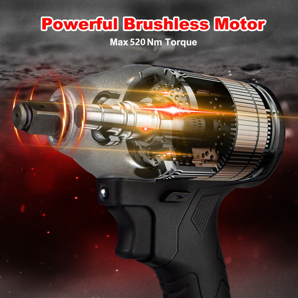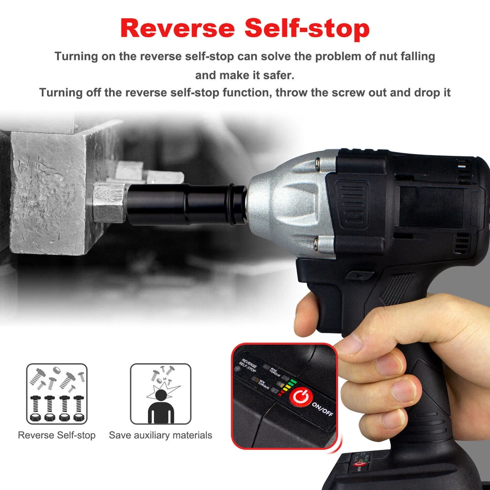 1/2'' Electric Impact Wrench Gun Cordless w/ Li-ion Battery High Power Driver