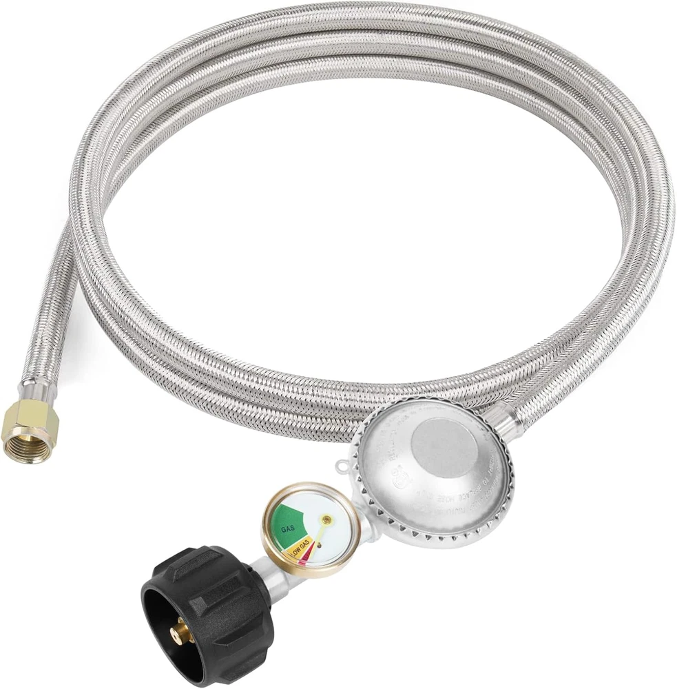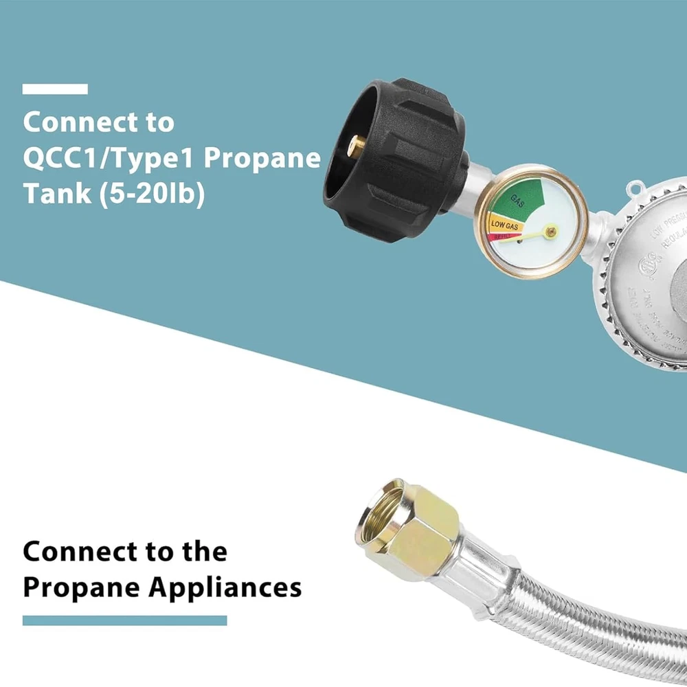 Store New Arrivals Add to Favorite View Feedback Contact 12 Feet Propane Regulator Hose with Gauge, Fit for Propane Fire Pit, Patio Heater, Gas Grill and More, Stainless Steel Braided Hose Description Maximum Pressure 0.5 Pound per Square Inch Color Silver Material Stainless Steel Material Type Stainless Steel Item Weight 2.73 pounds Item Length 144 Inches Is Discontinued By Manufacturer No Product Dimensions 144"L x 0.37"W Size 12 Feet Upgrade: The attached propane gauge can detect dangerous leaks and read fuel level at a glance More Sturdy: Stainless braided hose (5/16" ID) prevents whatever animals from chewing through it Multi-Purpose: QCC-1 propane cylinder thread x 3/8" female flare fitting, fits for propane grill, camp stove, fire pit, heater, water heater and more low pressure device Control Gas Flow: The regulator Outlet Pressure is 11" W.C. (1/2 PSI). Keeping flow stably and at appropriate levels, your grill will work like new once again Safety: This propane regulator hose has excess flow protection and will automatically shut off when abnormal pressure is detected. Protect you from danger Product Description Built to Last 4 layers of sturdy materials: PVC, nylon sewing thread, rubber, and braided stainless steel. High Flexibility The hoses can be easily bent into any shape, flexible for outdoor camping or cooking. No Leakage 100% solid brass connectors create tight connection- making it safe to use. Compatible with Outland Living fire pit, Char-broil gas grill, Blackstone 28''/36'' griddle, Camp Chef stove, water heater, etc.. Specifications: Inlet: QCC-1 Outlet: 3/8'' Female Flare Fitting Gas Type: Propane Tips: Please check if the power value of your device is 0-80K Btu/h. If connected to a device with more than 80,000 Btu/h, it will trigger the overcurrent protection, resulting in low airflow or no ventilation. ABOUT US We offer the best prices around on high quality products. Our E-store includes media such as books, movies, music and games while offering electronics, toys, sporting apparel, clothing, tools, general home, garden items and more. SHIPPING We are always working hard to ensure your package arrives as soon as possible. Please understand that some factors like weather, high postal traffic, and the performance of shipping companies are outside of our control. We offer free shipping to the lower 48 states and ship within 2 business days of payment, usually sooner. We do not accept P.O. Boxes. Please provide a physical address. For shipping outside of the continental USA, we only use eBay's Global Shipping Program.The item is shipped to KY and then sent to the rest of the world. International customers are responsible for all duties and taxes. Continue to check out in order to calculate costs for shipping the item to your country. Messages regarding eBay's Global Shipping Program MUST be directed at eBay EXCLUSIVELY. RETURNS We offer a 30-Day Return Policy on items which you are not completely satisfied with. You have the option for a full-refund or an exchange of the item. No returns are available on items shipped outside of the USA. PAYMENT We accept PayPal. CONTACT US This page content is yet to come Please ad us to your favorite seller and visit again later Thank You CUSTOMER SATISFACTION We try our very best to make sure every customer is completely satisfied. If there's a problem, message us! We're happy to help. WE ACCEPT Copyright © 2021 AutoDS. | All Rights Reserved