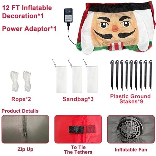 30 Days Return Policy Fast Delivery Trusted seller 12 Foot Giant Christmas Inflatables Nutcracker Decoration Outdoor Blow Up Candy Cane Christmas Decoration with Build-in LED Light Tethers Stakes Xmas Decor Holiday Party Yard Garden Lawn Home Product Description 12 Ft Giant Christmas Inflatable Nutcracker: 12 Foot Tall Giant Christmas Inflatable Nutcracker with Candy Cane, LED Lighted Christmas decoration for outdoor yard lawn garden. Measures 5.9*3*12 Foot (length*width*height) 5 Internal Super Bright LED Lights: The Christmas Inflatables Outdoor Decoration is equipped with 5 Super Bright LED Lights built inside to illuminate your yard for attractions to your neighbors and guests Stable and Sturdy Design: Set includes a inflatable Nutcracker, 7 plastic ground stakes, 2 sandbags, 3 rope, 1 plug and built-in blower. You can use the included stakes, ropes and sandbags to firmly fix the inflatables on the outdoor ground. And the sandbags require to be filled with sand before use, then put inside the inflatables Easy and Fast to Inflate & Deflate: Come with 1.5A built-in blower and 2A adapter, making it quickly be fully inflated within minutes after plugging into an outlet! The bottom zipper can help fast deflate for storage without taking many space Christmas Blow Up Yard Decorations: Christmas Inflatable outdoor decorations for your yard, home, doorways, lawn, indoor, Xmas night events, etc. The Christmas inflatable decor is made of durable and waterproof polyester fiber material. Shipping Returns Payment Shipping Shipping is FREE to all addresses other than APO/PO boxes in the lower 48 states. All our stock ships from US-based warehouses. Shipped via USPS or UPS (depending on location and package weight) Unless stated otherwise, all orders will ship within 24-72 hours of your payment being processed. Check our feedback to see the great reviews of FAST shipping we offer. Returns As our valued customer, we will do our best to make sure the product you receive arrives to you on time and as expected. If you are not satisfied with your purchase, please contact us within 30 days of receiving your order to process a return. Payment We currently accept payment via eBay managed payments only. Once payment is cleared, we will dispatch your shipment within 1-3 business days. Please refer to the "Shipping" tab for more information regarding shipping speed to your destination.