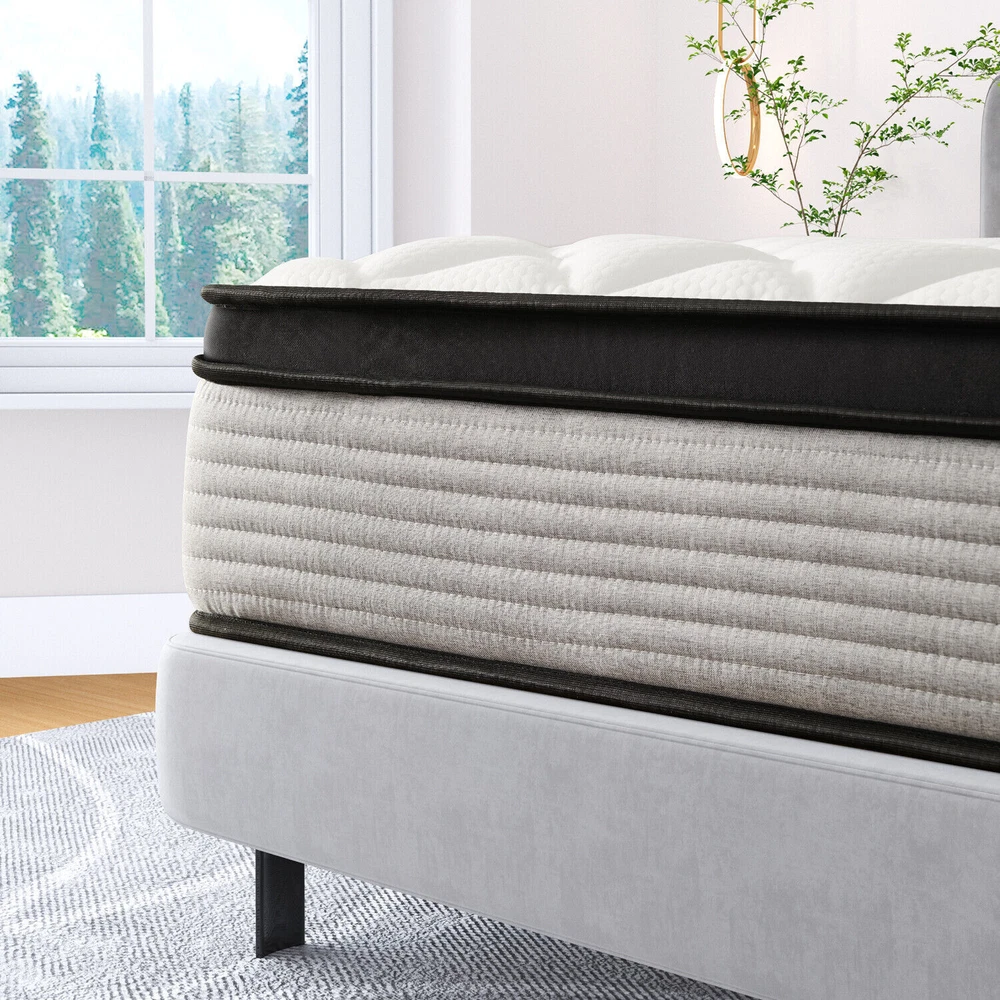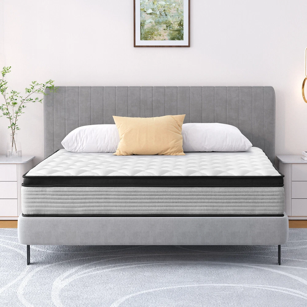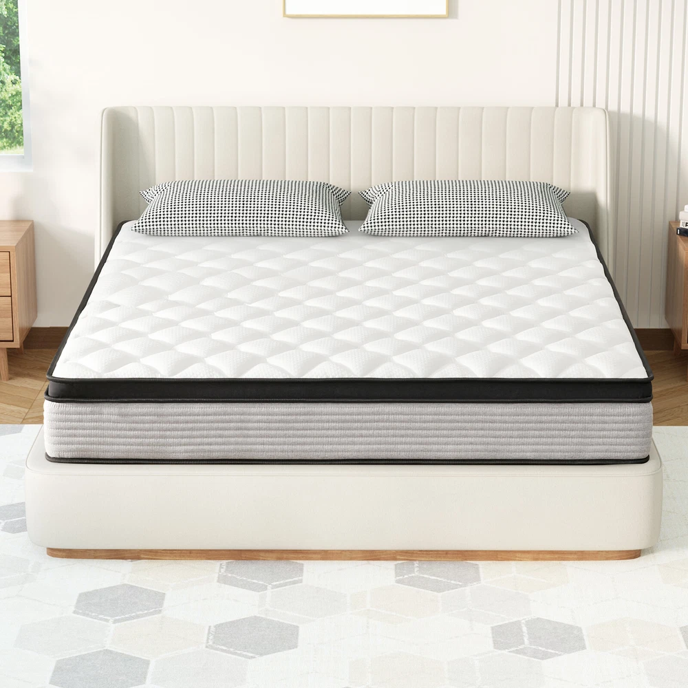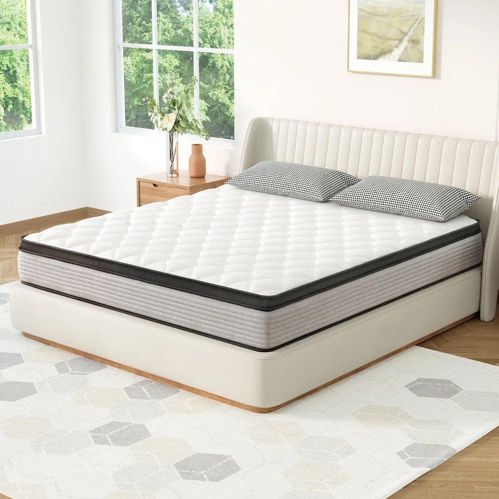 Features & details [Individual Pocket Springs]: Our Hybrid Mattresses include all the benefits of the mattress plus our innerspring unit with independent non-woven fabric. The edges are reinforced to give you extra support and eliminate that “roll-off-the-edge” feeling. And it provides better motion isolation and less noise. Our mattresses effortlessly absorb partner movement so that you can get healthy sleep. [High-quality Foam]: Mattresses are covered by good-quality knitted fabrics which are naturally hypoallergenic and perfect for kids or adults and multiple layers of high-quality foam which is ventilated and breathable. [Motion Isolation]: The parallel arrangement of pocket coils is adopted. When you sleep with your lover, it will not interfere with your sleep. You can achieve a quiet and comfortable sleep. [Comfortable Sleep]: Our new design with a hybrid construction of individual pocket springs. Our mattresses are medium firm. Better motion isolation and less noise ensure that you will not be awakened. [Mattress in a Box]: This memory foam and spring hybrid mattress is compressed, rolled & shipped in a box conveniently to your door for easy setup. For a better sleeping experience, please allow at least 72 hours for the mattress to fully expand. [Best Service]: Customer satisfaction is our top priority. If you have any questions or suggestions about our mattresses, please feel free to contact us at any time. Product information Firmness: Medium Firm Colour: Blue Thickness : 10 in / 12 in / 14 in 10 Inch Overall dimension/Weight: Twin: 75" x 39" x 10" / 45 lb Full: 75" x 54" x 10" / 63 lb Queen: 80" x 60" x 10" / 73 lb King: 80" x 76" x 10" / 93 lb 12 Inch Overall dimension/Weight: Twin: 75" x 39" x 12" / 50 lb Full: 75" x 54" x 12" / 68 lb Queen: 80" x 60" x 12" / 77 lb King: 80" x 76" x 12" / 96 lb 14 Inch Overall dimension/Weight: Twin: 75" x 39" x 14" / 55 lb Full: 75" x 54" x 14" / 74 lb Queen: 80" x 60" x 14" / 85 lb King: 80" x 76" x 14" / 105 lb