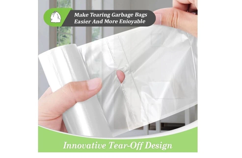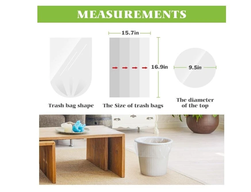 1.2 Gallon 120 Counts Strong Trash Bags Garbage Bags, Bathroom Trash Can Bags Wa Capacity 5 Liters Unit Count 120.0 Count Color clear Material High Density Polyethylene Item Form Bag Scent Unscented Number of Items 120 Item dimensions L x W x H 10.63 x 6.14 x 0.79 inches About this item MATERIAL: our small trash bags are all made of the HDPE material. This kind of material can make the garbage bags stronger. MULTIPURPOSE: This bag is designed not only for indoor use (for office, kitchen, living room, bedroom, bathroom, diaper disposal, paper shredder etc) but also for outdoor applications (cat litter, dog waste, car trash etc). STAR SEAL BOTTOM: Allows easy removal from receptacle. This bag is pure clear. It allows to easily view and identify the contents of the bag to help separate. SIZE FOR SMALL TRASH CANS: An integral forming on the bottom leaves no space to leak. ROLL DESIGN: You can put a roll of garbage bags in your rooms, living room, bathroom, your kitchen and your car, etc.
