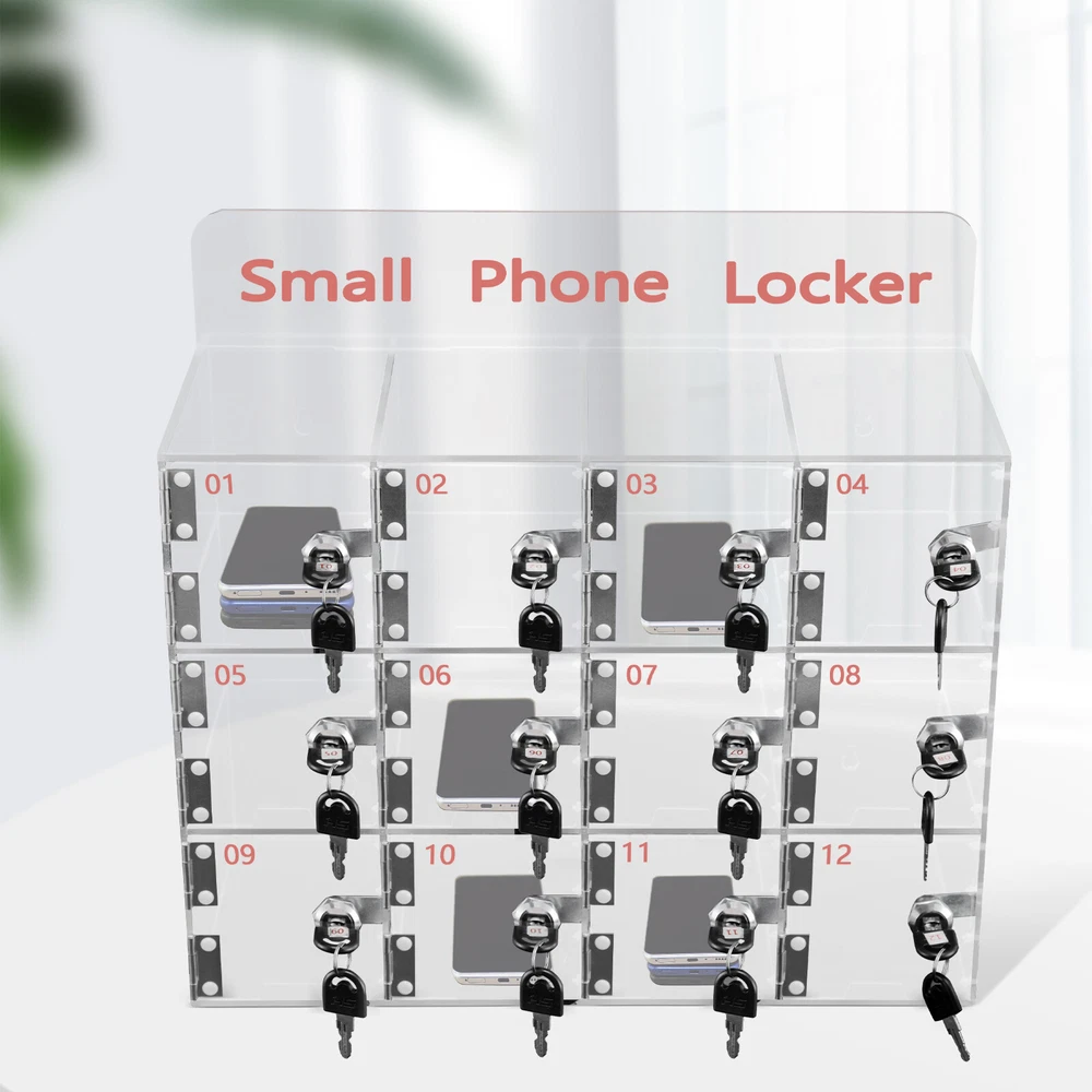 Description Nowadays, cell phones have become indispensable items for people to carry around. But there are always many occasions when it is not appropriate to carry a cell phone, such as at the gym, important meetings, and classes. Then these places need to have a storage box to make people more focused. This clear cell phone storage box has 12 slots with independent keys to ensure safety while providing easy access and can meet most storage needs. It's your ideal choice! Key Features High-quality Material: This product is made of high-quality acrylic, which is strong, durable, drop-resistant, wear-resistant, environmental-friendly, and not easy to deform. Clear Design: The transparent design allows you to see the items inside the slots at a glance, making it more convenient for you t 12 Grids Modern Clear Acrylic Cell Phone Locker Cellphone Storage Organizer Box Description Nowadays, Cell Phones Have Become Indispensable Items for People to Carry Around. but There Are Always Many Occasions When It Is Not Appropriate to Carry a Cell Phone, Such As at the Gym, Important Meetings, and Classes. Then These Places Need to Have a Storage Box to Make People More Focused. This Clear Cell Phone Storage Box Has 12 Slots with Independent Keys to Ensure Safety While Providing Easy Access and Can Meet Most Storage Needs. It's Your Ideal Choice! Key Features High-quality Material: This Product Is Made of High-quality Acrylic, Which Is Strong, Durable, Drop-resistant , Wear-resistant , Environmental-friendly , and Not Easy to Deform. Clear Design: the Transparent Design Allows You to See the Items Inside the Slots at a Glance, Making It More Convenient for You to Access the Items. High Safety: Each Slot of This Product Comes with Two Separate Keys. the Keys of Different Slots Can't Open Each Other, Which Can Prevent Your Phone from Being Stolen. Large Capacity: It Has a Total of 12 Slots and Each Has a Size of 4*7.3*4inch, Making It Easy to Access Without Scratching Your Hands, and Can Store Many Stacked Cell Phones. Easy to Manage: Each Slot and Each Set of Keys Have a Digital Code for Easy and Correct Phone Taking, Facilitating the Storage and Management of Items. Good Stability: the Rectangular Shape Forms a Stable Structure, so It Can Stand More Firmly. You Can Use It Without Worrying About It Shaking and Tipping. Easy to Install: This Product Can Be Freestanding or Wall-mounted. It Comes with Complete Accessories Which Can Help to Install It on the Wall Easily, Saving You Floor Space As Well As Time and Effort. Ready to Use: This Product Does Not Require Assembly. You Can Use It Directly After You Receive It, Which Is Very Convenient. Guaranteed Customer Service: We Aim to Provide Quality Products and Services. If You Have Problems, Please Feel Free to Contact Us. We Will Reply and Solve the Problem for You As Soon As Possible. Details Coil: Each Set of Keys Is Equipped with a Coil, Which Makes It Easy to Hang and Carry the Keys, Thus Avoiding the Loss of Keys. Digital Code: Each Slot and Each Set of Keys Have a Digital Code, Making It Easy for You to Find the Corresponding Slot. This Can Facilitate the Management and Storage of Items. Gourd Hole: Gourd Holes on the Back Make the Product Easy to Install on the Wall and Not Easy to Fall off. Lock Cylinder: the Lock Cylinder Is Made of Zinc Alloy, Which Is Strong, Durable, and Not Easily Deformed. the High-quality Lock Cylinder Is Not Easy to Be Forcibly Damaged to Ensure the Safety of Mobile Phones. Charging Port: the Charging Port Inside Allows You to Conveniently Charge Your Mobile Phone. Chamfering Process: This Product Uses a Chamfering Process, Which Makes Its Edges Smooth and Can Avoid Accidental Scrapes and Knocks. You Can Use This Product with Peace of Mind. Application It Is Suitable for Offices, Conference Rooms, Cinemas, Training Rooms, Factories, Restaurants, Businesses, Confidential Units, Institutions, Gyms, Hospitals, Waiting Rooms, Schools, and Training Institutions. It Is Suitable for Storing Small Items Such As Cell Phones. Specification Color: Clear Material: Acrylic Shape: Rectangular Style: Modern Process: Chamfering Process Number of Slots: 12 Installation Method: Screw-in Mounting Type: Wall Mount, Freestanding Net Weight: 4.5kg/9.9lbs Gross Weight: 5kg/11lbs Package Size: 50*26*39cm/19*10*15inch Product Size: 42*18.5*32cm/16.5*7.3*12.6inch Package Included 1* Clear Cell Phone Locker 12* Coils 12 Set* Keys 5* Screws 5* Expansion Tubes Notes Please Allow the Slight Color Difference Caused by the Shooting Light and 1-3cm Error Due to Manual Measurement, and Make Sure You Do Not Mind Before Ordering. Payment Delivery details Terms of sales About us Contact us Payment We accept ebay payment 。 Fees such as import duties, taxes are not included in the item price or shipping costs. These charges are the buyer's responsibility. Delivery details Shipping: 2-9 working days to: USA Terms of sales We maintain high standards of excellence and strive for hundred percent customer satisfaction. Feedback is very important to us. We hope that you contact us immediately before you give neutral or negative feedback, so that we can address your concerns. It is impossible to address issues if we do not know about them! About us Your satis faction is our ultimate goal. We work hard to earn your trust and future business. Our certified technicians have tested each item before shipping. The unit comes with 1 year limited warranty on all manufacturing defects. a) If you receive a defective item, you may return it or ask for a discount. Please contact us within 14 days after you receive the package. b) What you returned must be intact and in its original packaging as re? u. Customer is responsible for shipping costs of the returned item. c) We will cover the cost of shipping back t with the shipping rate indicated in the registration page. We will send you a new unit or refund the full payment you paid. Thank you. Contact us Business Hour Business H