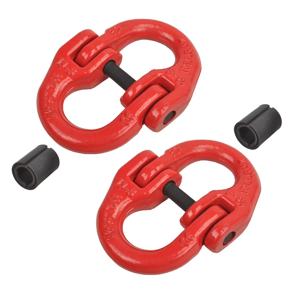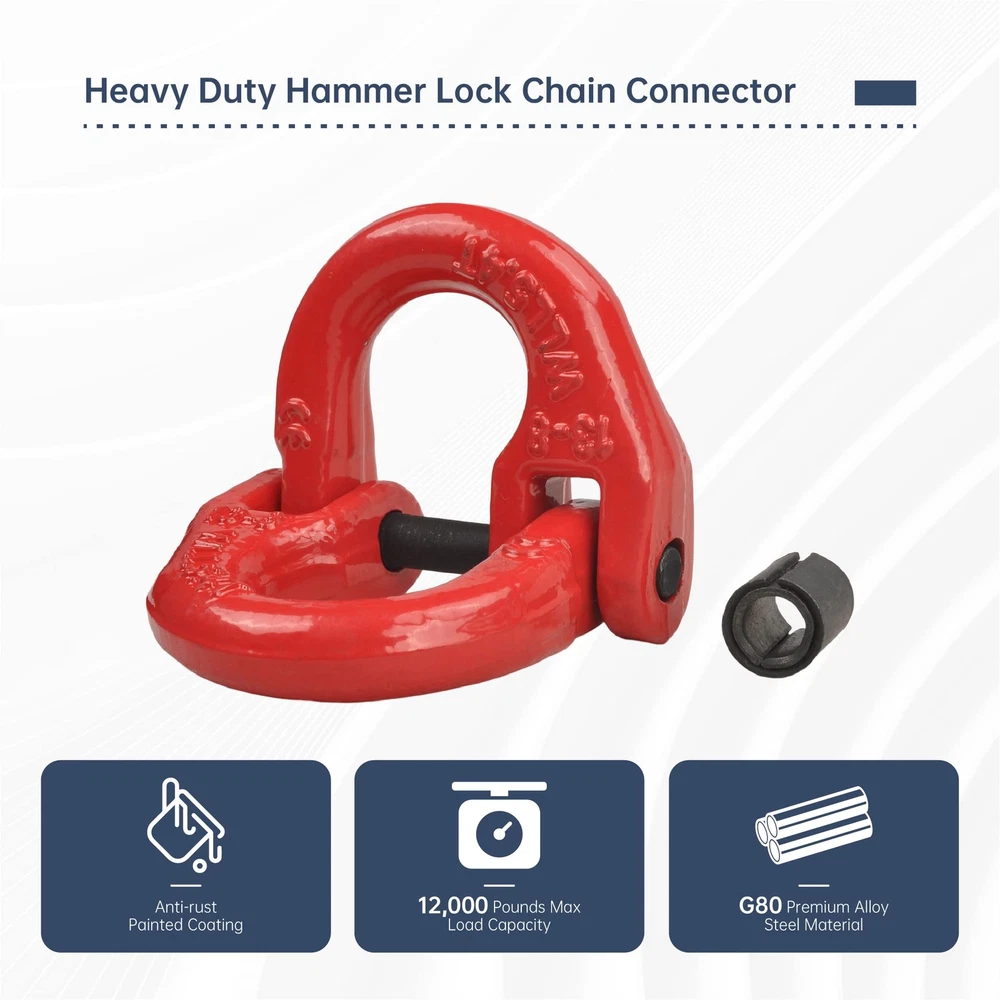 Premium Material: Made of heavy-duty 80 drop forged alloy steel.Each Coupling Link can provide a load capacity of 12,000 pounds in maximum. Fabulous Craft: The surface is coated with black for rust and corrosion resistance and durability Safety Lock Design: This coupling connector link comes with anti-drop pin preventing it from getting disconnect and ensuring safety. Package Include: pair of coupling links and drive pins. Fitment: 1/2 inch hammerlock coupler can be used to quickly assemble,dismantle and reassemble.Widely used in ,Ford,GMC,trailer, port transportation, hoisting, sling connection, metallurgy, port and other industries, etc.