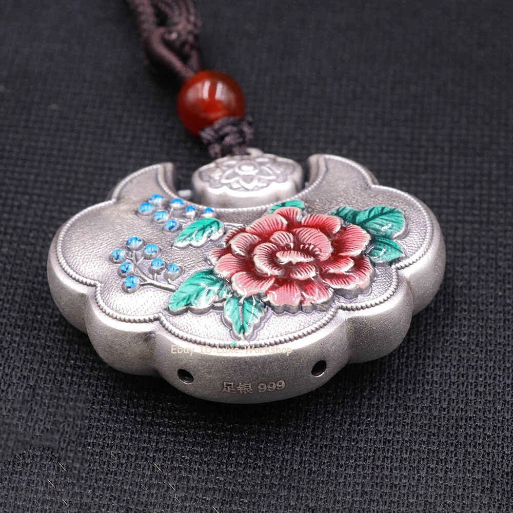 This stunning 999 pure silver pendant is a true work of art! The delicate peony enamel painting adds a vibrant pop of color against the bright silver, while the longevity lock design gives it meaningful elegance. At 1.2 inches, it's the perfect dainty statement piece that feels substantial (11g) without being bulky. Love that it comes with proper 999 silver stamps and care instructions—mine arrived shining beautifully. The vintage Thai silver look makes it stand out from typical jewelry. Already getting compliments!