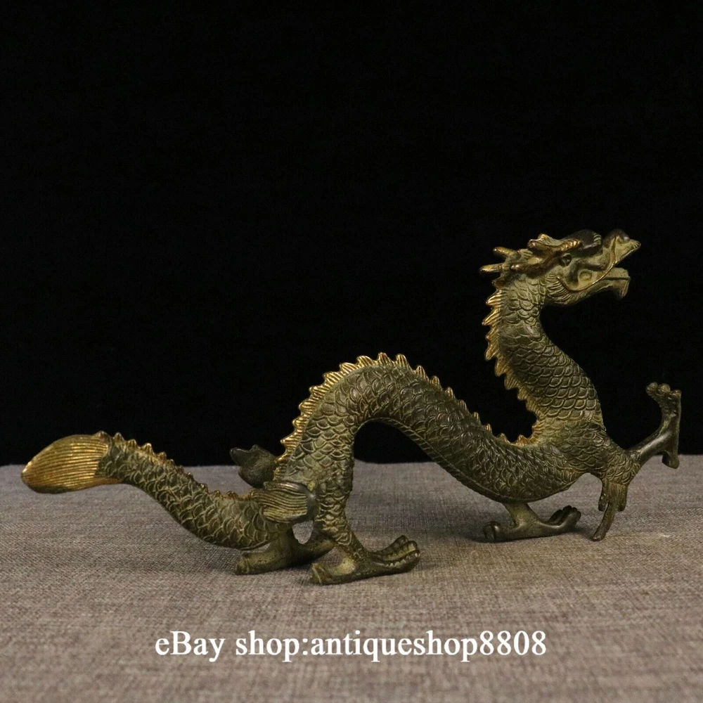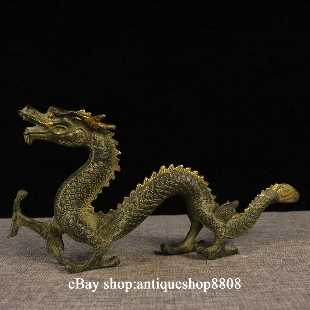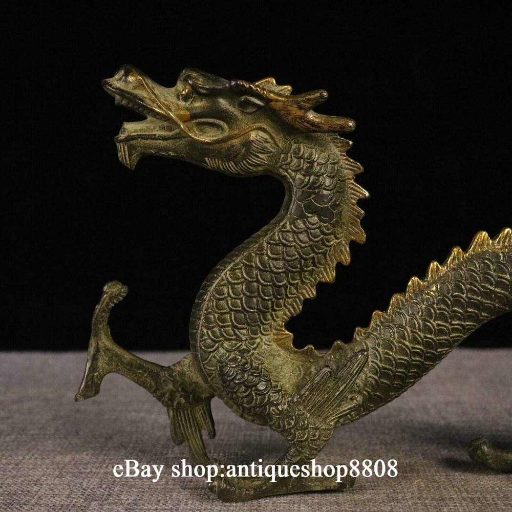 Antique Chinese Brass Flagon Statue with Double Dragons Playing Pearl