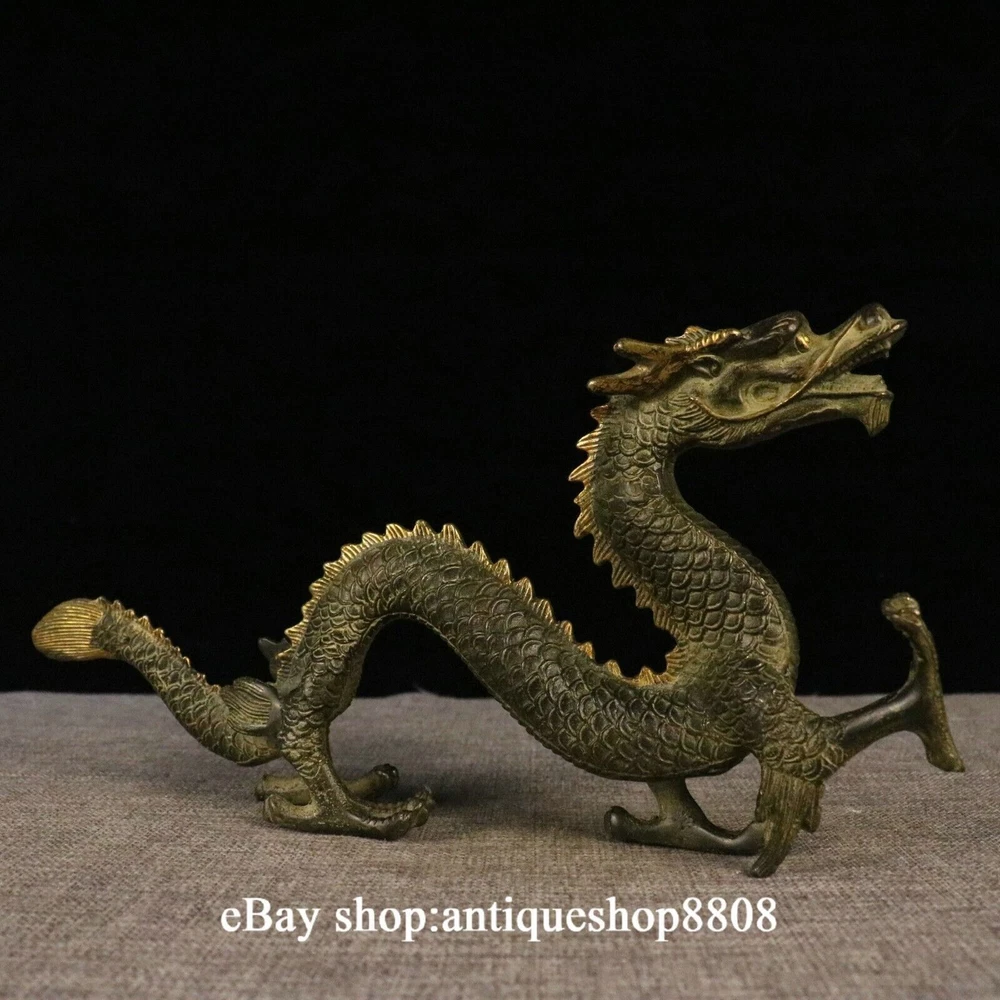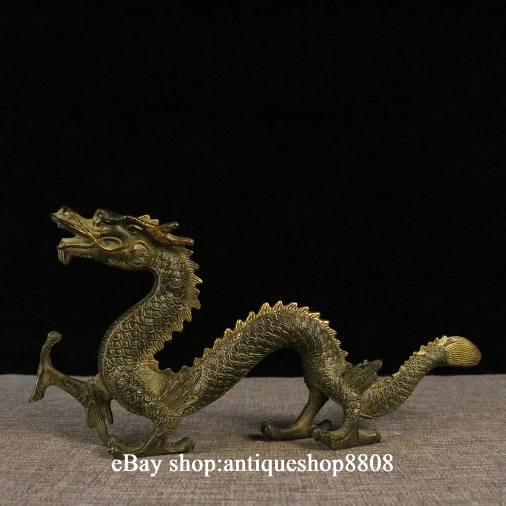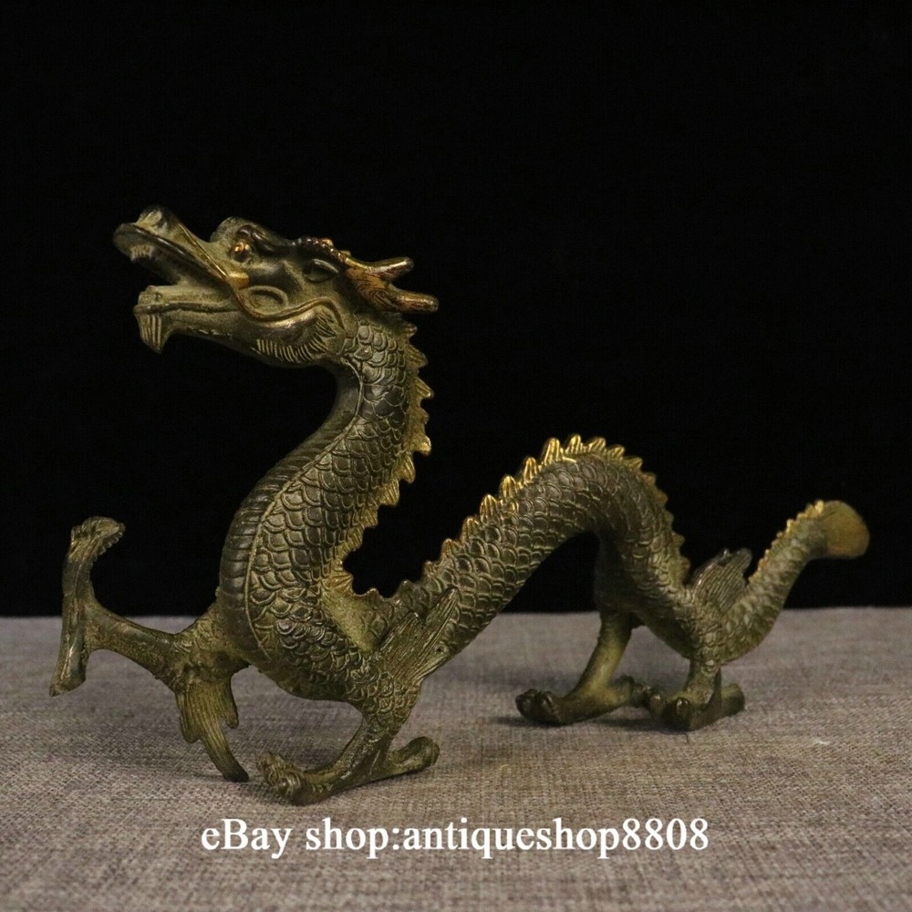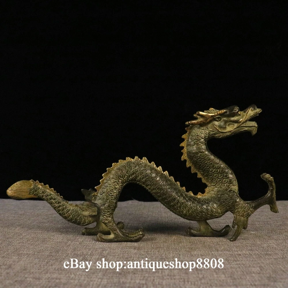 Antique Chinese Brass Flagon Statue with Double Dragons Playing Pearl