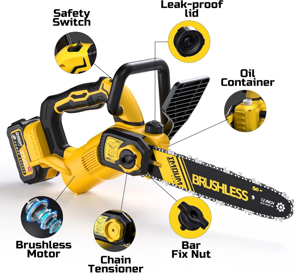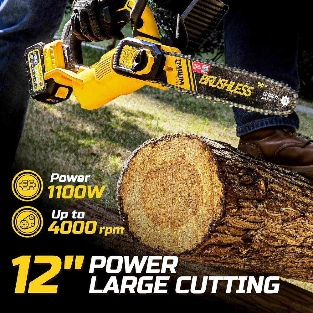 Menu Other Items Feedbacks About Us Contact Us Add To Favorites 12 Inch Brushless Chainsaw, Cordless Saw with Battery and Charger, 5.9Lb Super Lightweight & Compact, Auto Oiler, 5.0Ah Battery 1100W Power, Handheld Chain Saw for Wood Cutting, Tree Trimming, Pruning The 12" cordless chainsaw redefines power with a 1100W brushless motor, slicing 8" log in 12s as effortlessly as a knife through butter! Brushless Motor. The 50-series brushless motor architecture maximizes performance in a compact frame, paired with heat-treated 65Mn steel blades that dominate hardwood, firewood, and trees with equal ease. Ultra-Light. Ultra-Agile. Weighing just 5.9lbs (30% lighter than competitors), this cordless chainsaw conquers tight spaces and home gardening tasks with effortless precision. The ergonomic anti-slip grip and streamlined design ensure fatigue-free operation, and trimming shrubs with one hand. 60-Minute Powerhouse. The battery powered chainsaw equipped with a 5000mAh high-density battery, enjoy uninterrupted runtime in garden, yard, storm cleanup, landscaping, or DIY creations. Advanced circuit protection guarantees stable performance. Low Maintenance. The self-lubricating chain stays razor-sharp without oil mess, while tool-free tension adjustment enables quick chain swaps in seconds. This 12 inch handheld saw is perfect for first-time users and seniors alike. Safety Redefined. Dual-safety interlock triggers and anti-kickback tech prevent accidental startups. Optimized weight distribution ensures comfortable left/right-handed use during prolonged tasks. Eco-Friendly. Lithium-ion technology delivers zero-emission, 60% quieter operation compared to gas saws. Ideal for noise-sensitive environments and environmentally conscious projects. Versatile Usage.Ideal for homeowners, campers, and anyone needing a portable yet capable cutting tool. Product Description MULTI HIGHLIGHT DESIGNS AUTO OILER The modern-designed splash guard also prevents branches splashing onto your clothes while using it. Quick easy chain tension system The modern-designed splash guard also prevents branches splashing onto your clothes while using it. Item Specification Item model number DLJ12 Style 12 inch w/ 5.0Ah Product Dimensions 8"L x 4"W x 12"H Power Source Battery Powered Country of Origin China Item Weight 4.8 Pounds Batteries 1 AAA batteries required. (included) Horsepower 2 hp Chain Speed 30 Feet Per Second Chain Length 12 Inches Dimensions Shipping Returns Additional Info Product Dimensions: 4.0 "h x 8.0 "h x 12.0 "h. Weight: 4.8 lb Fast shipping is very important for us. Our standard shipping service is FREE. Your order will be shipped within 1-3 business days upon full payment received. Most items are delivered within 3-5 business days, however, please allow 3-10 business days. We are shipping only to USA. We only ship to the confirmed Paypal address. We reserve the right to cancel any order for any reason at any time. We are not responsible for undeliverable addresses. We offer a 30 day return policy from checkout winning date. Your satisfaction is guaranteed! If for any reason you are unhappy with your item, just return it within 30 days for a full refund, minus shipping cost. Please contact us prior to initiating a return so that we can issue you a refund authorization. Items defective upon receipt must be packaged in their retail packaging as if new and returned with a detailed description of the problem. Return shipping fees are not refundable. We reserve the right to decline any returns if the above guidelines are not followed. All of our items, unless otherwise stated, will only run on 120 volts. Please check to make sure your country complies with these specifications. If you have a problem or question regarding your transaction please contact us before leaving any type of feedback. We will work with you to resolve any problem you may have.