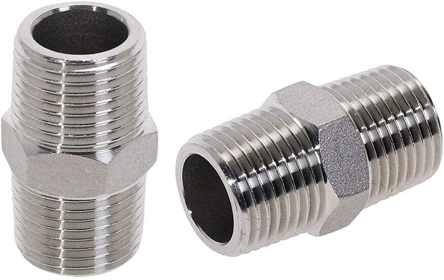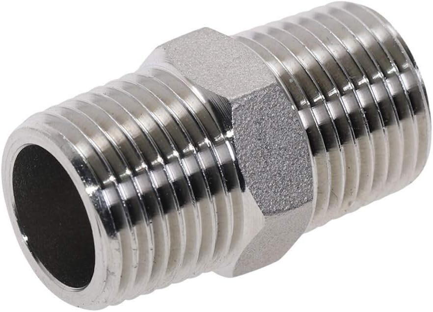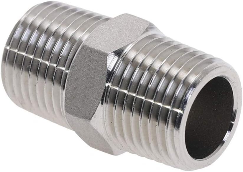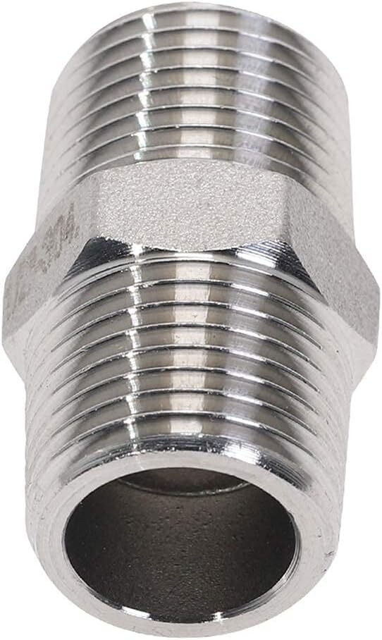 1/2" Male x 1/2" Male NPT. Made of high quality stainless steel, corrosion resistance, ductility at high temperatures, and low magnetic permeability. Maximum working pressure:2800PSI. Working Temperature: -868 to 1472 degrees F/-500 to 800 degrees c. It is a good choice for laying pipes in home buildings, and it is not easy to damage after long-term use. Product Description Description: 1/2" Male x 1/2" Male NPT Made of 304 Stainless Steel Maximum working pressure:2800PSI Working Temperature: -868 to 1472 degrees F/-500 to 800 degrees c Package including 2pcs hex nipples