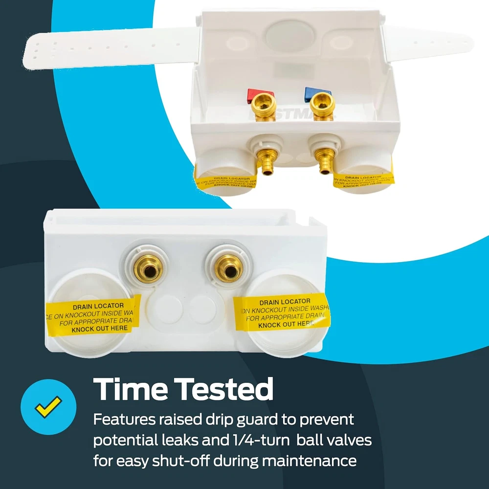 1/2 Inches Crimp PEX Connection X 3/4 Inches MHT Washing Machine Outlet Box New Eastman 1/2 Inch Crimp PEX Connection x 3/4 Inch MHT Washing Machine Outlet Box, Push to Connect Brass Plumbing Fittings, Double Drain, 60245 Product Description: The Eastman 1/2 Inch Crimp PEX Connection x 3/4 Inch MHT Washing Machine Outlet Box is a reliable and durable solution for organizing and securing washing machine water supply lines. Designed with push-to-connect brass fittings for easy installation, this outlet box features a double drain system for efficient water management. Its sturdy construction and compact design make it ideal for residential laundry spaces, providing a clean and professional look. Features: Easy Installation – Equipped with push-to-connect brass fittings, allowing for quick and hassle-free installation without the need for special tools. 1/2 Inch Crimp PEX Connection – Compatible with PEX plumbing systems, ensuring a secure and watertight connection for reliable performance. 3/4 Inch MHT Outlet – Standard male hose thread outlet accommodates washing machine hoses for a perfect fit. Double Drain System – Features dual drain openings to effectively manage water discharge, reducing the risk of leaks and overflow. Durable Construction – Made from high-quality materials, designed to withstand high water pressure and long-term use. Compact & Space-Saving Design – Fits neatly into laundry areas, providing an organized and professional installation appearance. Versatile Application – Suitable for both residential and commercial laundry setups, offering a dependable water supply connection. Style Crimp PEX (1807) Connection Pattern Outlet Box Warranty Description N/a. Batteries Included? No Batteries Required? No Finish Painted Product Dimensions 4"D x 9"W x 10.25"H Material Plastic Installation Type Screw-In Item Package Quantity 1 Item Weight 1 pounds Part Number 979757 Color White Finish Type Painted Voltage 1 Volts Included Components outlet box Size 1/2 in. PEX Connection Shipping Fast shipping is very important for us. Our standard USA shipping service is FREE. Your order will be shipped within 1-2 business days upon full payment received. Your order will be delivered within 1-3 business days after the handling time. We only ship to the confirmed address. We reserve the right to cancel any order for any reason at any time. We are not responsible for undeliverable addresses. Returns and payment We offer a 30 days return policy from checkout winning date. FeedBack Your feedback very important to us, after you get your package and you are satisfied with our service please leave us positive feedback If you have any problem with your order / any questions please before leave any type of feedback For any questions, using eBay contact system Please visit our eBay store to check out other items for sale! Thank you for shopping at our store.