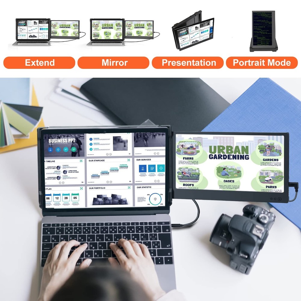 TAKE IT TO ANYWHERE YOU WANT As an extra laptop screen extender , it adheres to the concept of "simple" and "portable" and aims to create a more efficient world for people's work and life. When traveling, it’s easy to take apart, pack up and store in a backpack or laptop bag. Its lightweight, small and has made your work life so much easier. PRODUCT SPECIFICATION Compatible Laptop Sizes 13-16.5'' (Diagonal Size) Applicable Systems Windows/Android/Chrome/Linux/MAC Display Resolution 1920 x 1080 pixels Screen Aspect Ratio 16 : 9 Refresh Rate 60 Hz Technology LCD IPS HDR Cables TPYE-C *2, HDMI*1, USB2.0*1