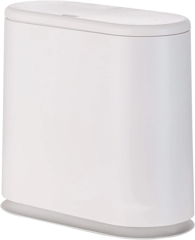 For quality and damage problems, you can click the order to contact the seller to,12Liter/3.17 GallonTrash Can with Lid: This is a trash can with press top lid that tucks well into small spaces and hides odors and litter. Easy to Clean: The wastebasket is made of plastic, easy to wipe clean with a damp cloth, and the plastic inner bucket can be easily removed for easy waste disposal. Easy to Use:Just press the button on the lid to open and close.It's durable and sturdy.Fits well in kitchen,bathrooms, offices or wherever space is limited. Dog-Proof Trash Can:The trash can is impossible for your puppy to open, and the oval-shaped small trash can is perfect for placing in small spaces such as kitchen or bathroom, which can help you save room space. 100% Satisfaction Guarantee: If for any reason you're not completely happy with your purchase- if it breaks, if it's damaged in shipping, or even if you change your mind - simply let us know and we will either replace it or refund your money, your choice! Product Description 12L Slim Bathroom Trash Can 12L Slim Bathroom Trash Can Cq acrylic 12L Slim Bathroom Trash Can Plastic 3.17 Gallon Small Narrow Gallon Garbage Can with Press Top Lid,Dog Proof Wastebasket Trash Can for Bedroom,Kitchen,Office,Living Room,White Easy to Clean: The wastebasket is made of plastic, easy to wipe clean with a damp cloth, and the plastic inner bucket can be easily removed for easy waste disposal. Space saving: Our trash cans are slim and rectangular, which is a space-saving design. The small and slim design saves you space and can be easily installed in narrow openings and small spaces. You can put it in any limited places such as bedroom, living room, kitchen and bathroom. 12Liter/3.17 GallonTrash Can with Lid: This is a trash can with press top lid that tucks well into small spaces and hides odors and litter. Dimension:13"L x 6.2"W x 12.7"H Easy to Use:Just press the button on the lid to open and close.It's durable and sturdy.Fits well in kitchen,bathrooms, offices or wherever space is limited. Dog-Proof Trash Can:The trash can is impossible for your puppy to crack, and the oval-shaped small trash can is perfect for placing in small spaces such as kitchen or bathroom, which can help you save room space.