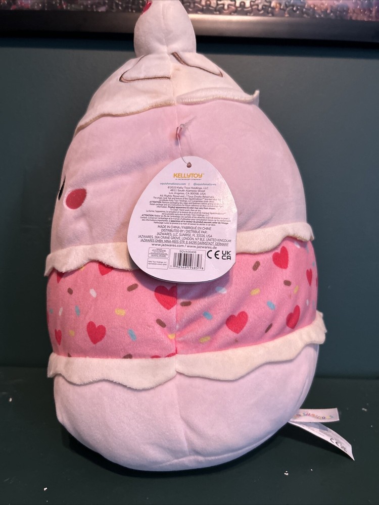 on this sweet and huggable BRINYA Squishmallow! The soft, squishy texture makes it perfect for cuddling, and the Valentine's Day cake design with pink hearts is absolutely charming. Great for gifting or adding to your collection—so cute and cozy!