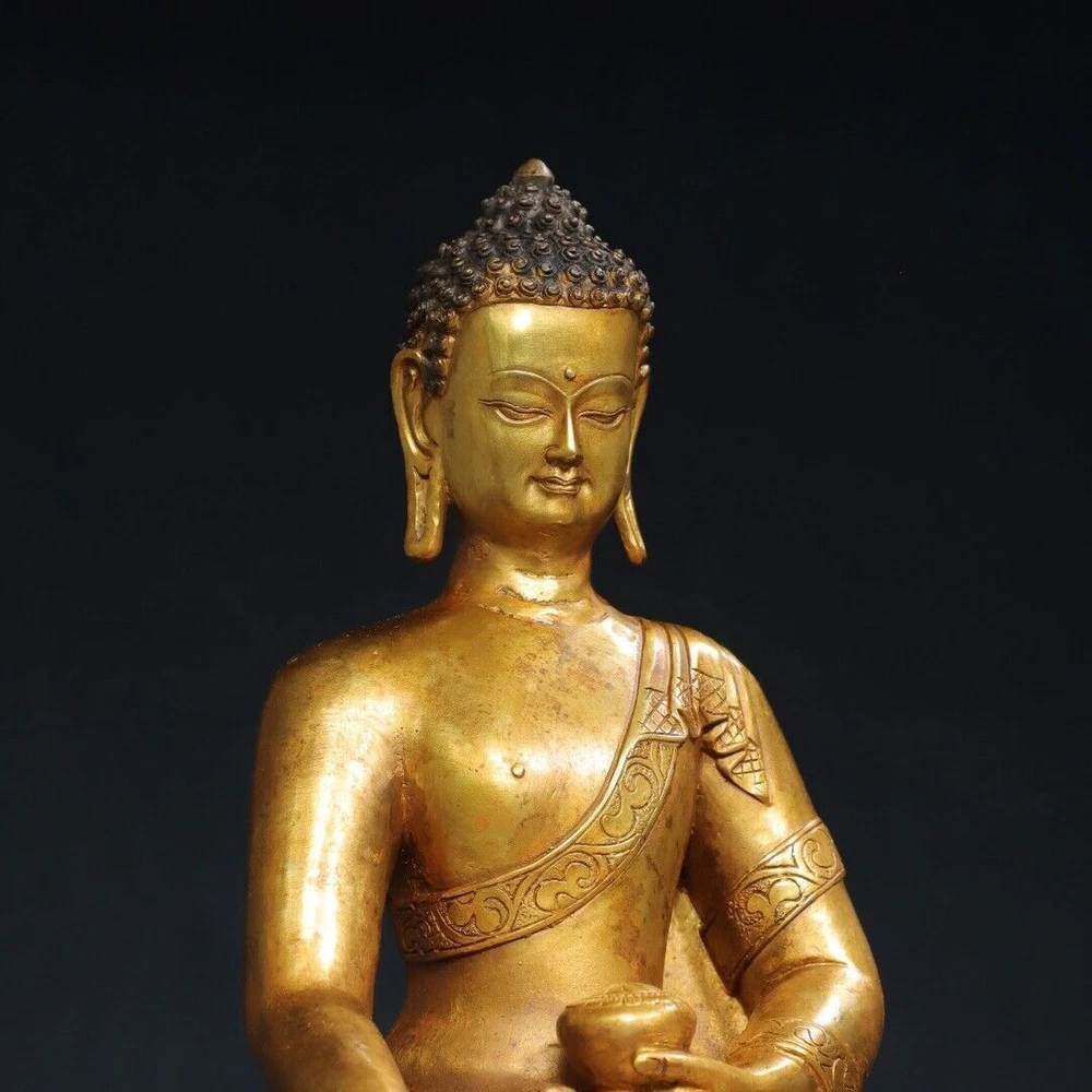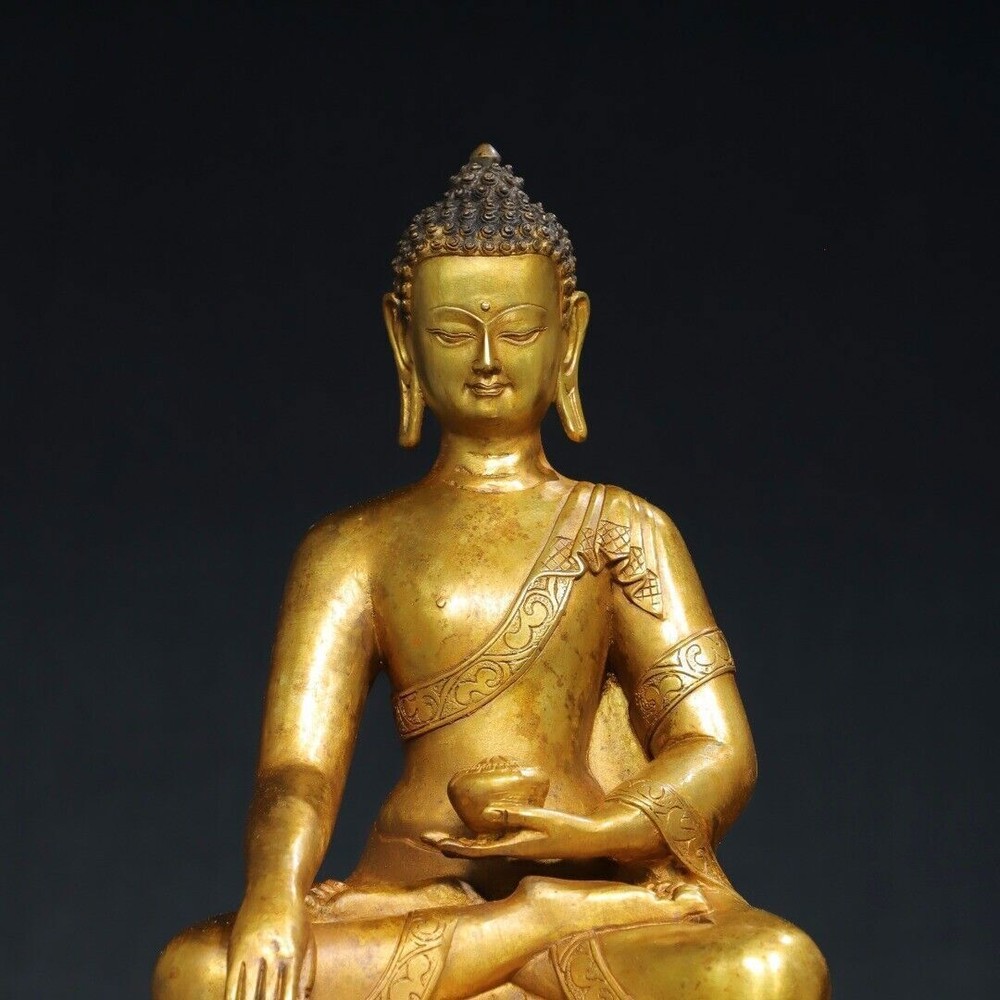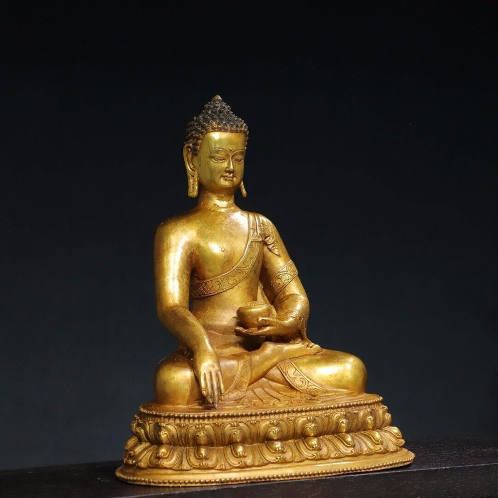 Size: Height: 30cm Wide: 24cm weight:2.35kg Material: bronze gilt NOTE: Withno wood stand!!!! Condition: Good condition Origin: China