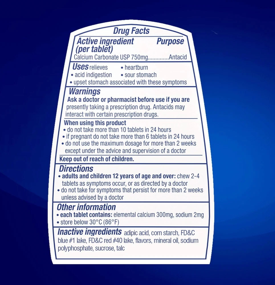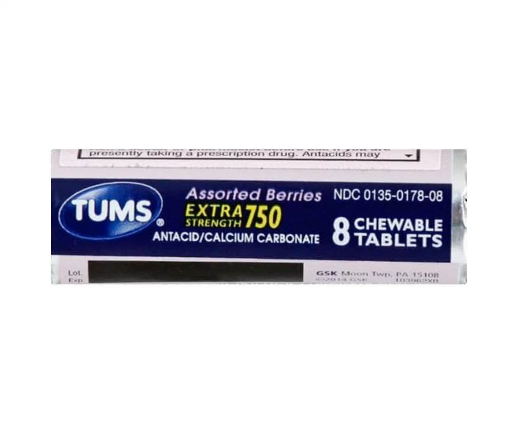 12 PACK Tums Extra Strength 750 Antacid Chewable Tablets Assorted Berries - 8 CT (BEST BY 08/01/2028)
