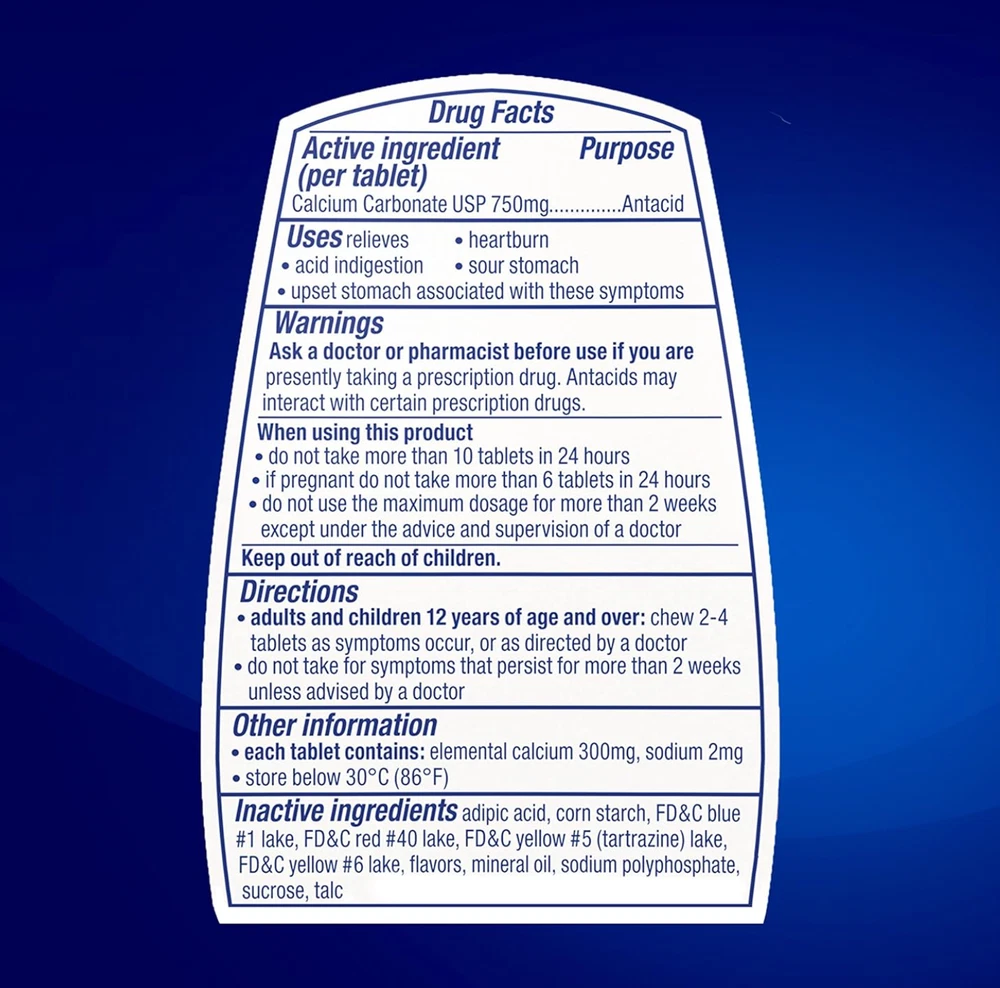 Dosage: 1 Brand: TUMS Expiration Date: 02/01/2028 Formulation: Tablet Type: Heartburn Relief