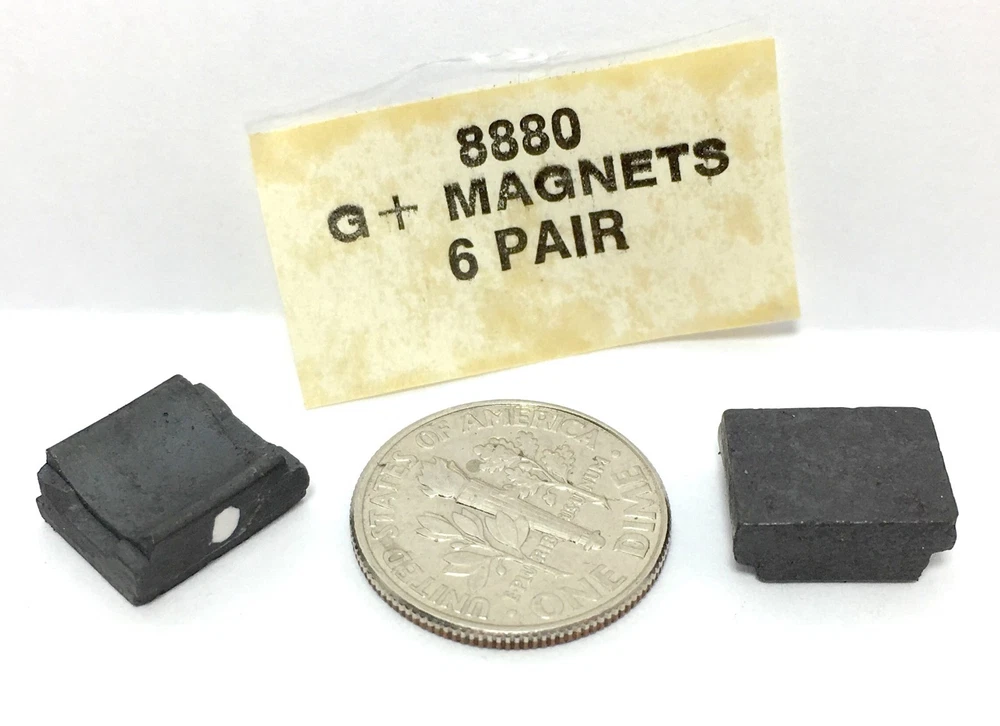 Very rare to see, offered here are (12) TWELVE PAIR of Original Equipment Manufactured Aurora G+ CHASSIS MAGNETS, part #8880. Fresh, fresh fresh Vintage parts! Sold as is with no reserve. Buy with confidence & please check out my other offbeat slot car related auctions. These come from my personal collector-obsessed 40-year collection. I will pack your item(s) well & try to ship promptly. Descriptions are very accurate; No Returns. Glad to combine shipping when practical. We ship promptly & professionally. We happily combine orders & refund any excess s/h immediately upon shipping. We can always provide tracking. I Only ship U. S. Postal Service PRIORITY MAIL TO THE USA. I apologize for any inconvenience, but; Due to previously lost packages: ALL INTERNATIONAL Shipments Only Ship by U.S. Postal Service, GLOBAL EXPRESS. Very Fast Delivery & Absolutely, Positively Guaranteed to arrive. I charge $3 or less for expert handling/packaging, & actual shipping. I ship out of the country almost daily. Please refer to my feedback, rating or time selling HO slots for assurances of a good honest deal. happy motorin' & thanks S'lots from bob at SlotCarCentral.com 615 N SALINA ST Syracuse, NY. Questions or issues gladly taken care of p315.214.4792 We Know H.O.