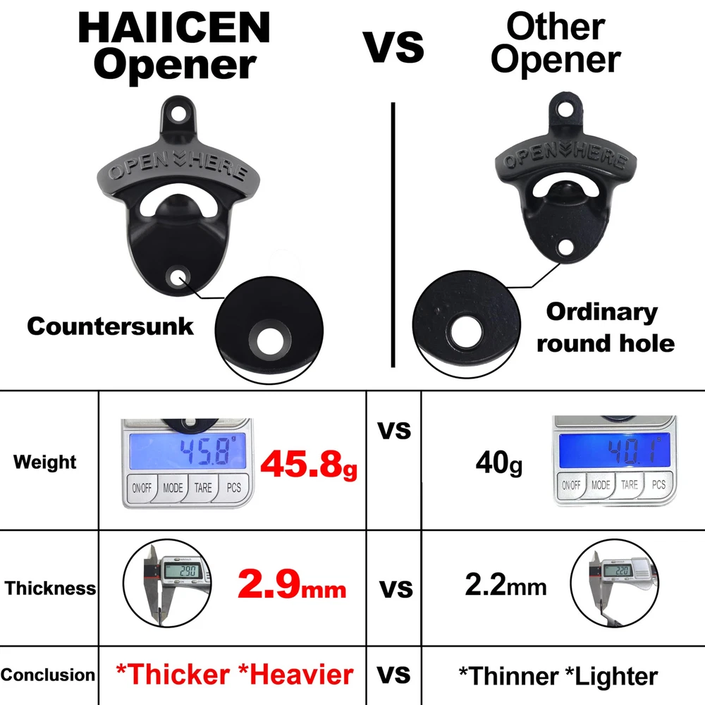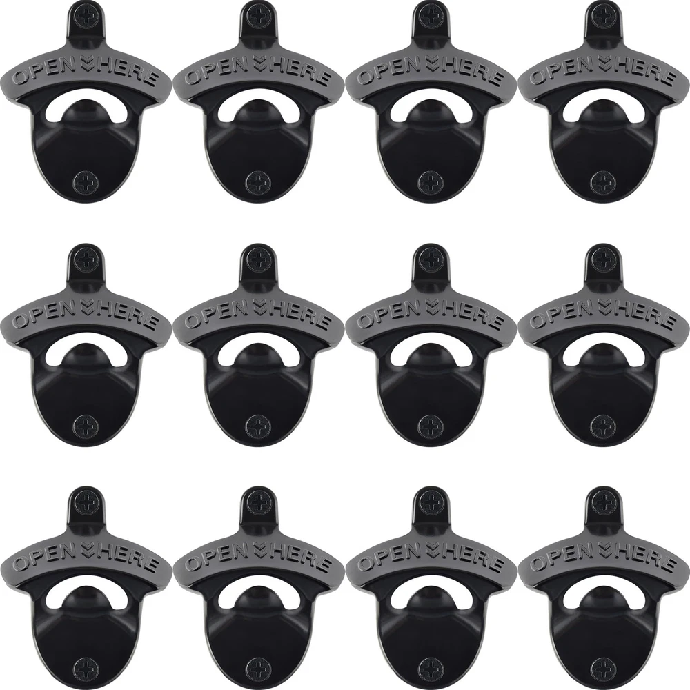 Cost-effective: 12 PCS black rustproof bottle cap opener wall mount and 12 pairs of black stainless mounting screw include of the box Durable and Embossed Design: The black soda beer bottle opener table mount is made of high-quality stainless materials with "OPEN HRER" embossed finish, suitable for indoor or outdoor use Mounting Screws Included: black post mounted bottle top opener (3.15x2.56x1.14 inches) contains mounting screws, you only need to find the installation position to complete the installation of the wall mounted bottle opener -Handed Easy Opening: Effortlessly open bottles without spills or mess, even with just hand. This stainless screw in wall drink opener allows you to swiftly remove caps from your favorite beer or soda bottles Used in different occasions: This wall mounted bottle opener can be installed on wooden caddy, cooler, post, table, shelf, bench, as well as indoor and outdoor scenes such as garages, cabins, man cave, backyard kitchens
