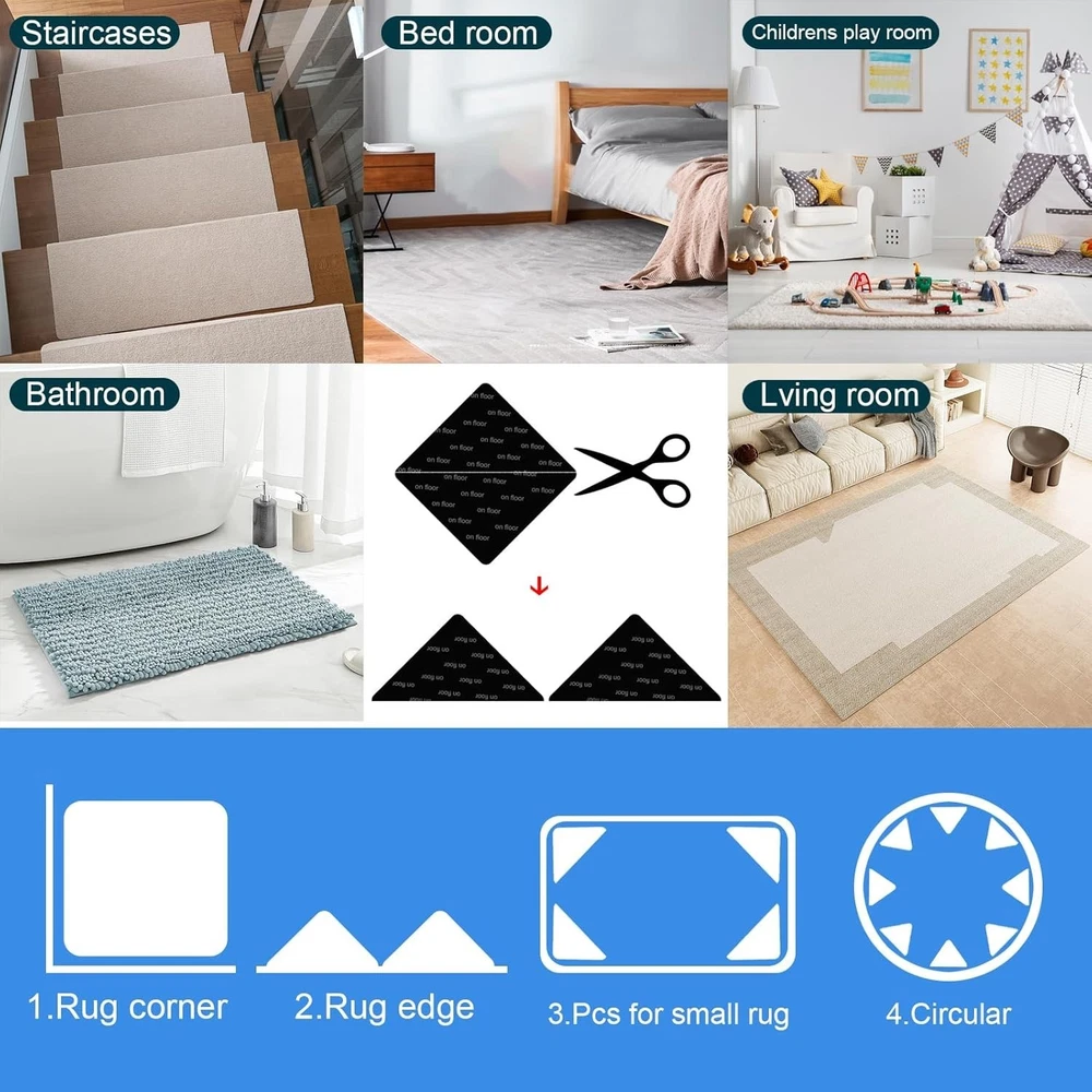 1-Column Ebay Template dewiso.com 12 PCS Rug Pad Gripper, Washable Grippers for Rug Tape, Non-Slip Carpet Gripper About this item Design features: One side is glued to the carpet with adhesive, while the other side is glued to the floor with a reusable adhesive surface to hold the carpet firmly to the floor. And our square design increases the contact area for maximum grip. EASY INSTALLATION: Simply stick the white sticker adhesive side firmly to the back of the carpet and the reusable adhesive side to the floor. You can also trim it to match different shapes or customize it for other uses. Reusable and Washable: The grippers can be reused multiple times and are machine-washable for easy cleaning. WIDE APPLICATIONS : Our Rug Pad can be widely used on hardwood floors, tile floors, concrete floors, marble floors, laminate floors and more. Includes: a pack of 12 pcs Rug Pad, and measures: 3.15*3.15 inches. Please note that the surface of the floor and the bottom of the carpet must be cleaned of dust and hair before use. Delivery within 3-4 days. Shipping as fast as possible Please contact if you have a question! Best_store-T is the best! Thanks for shopping!