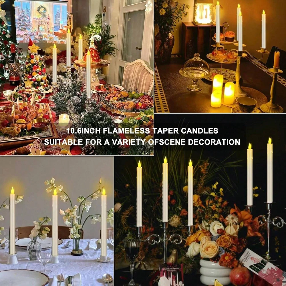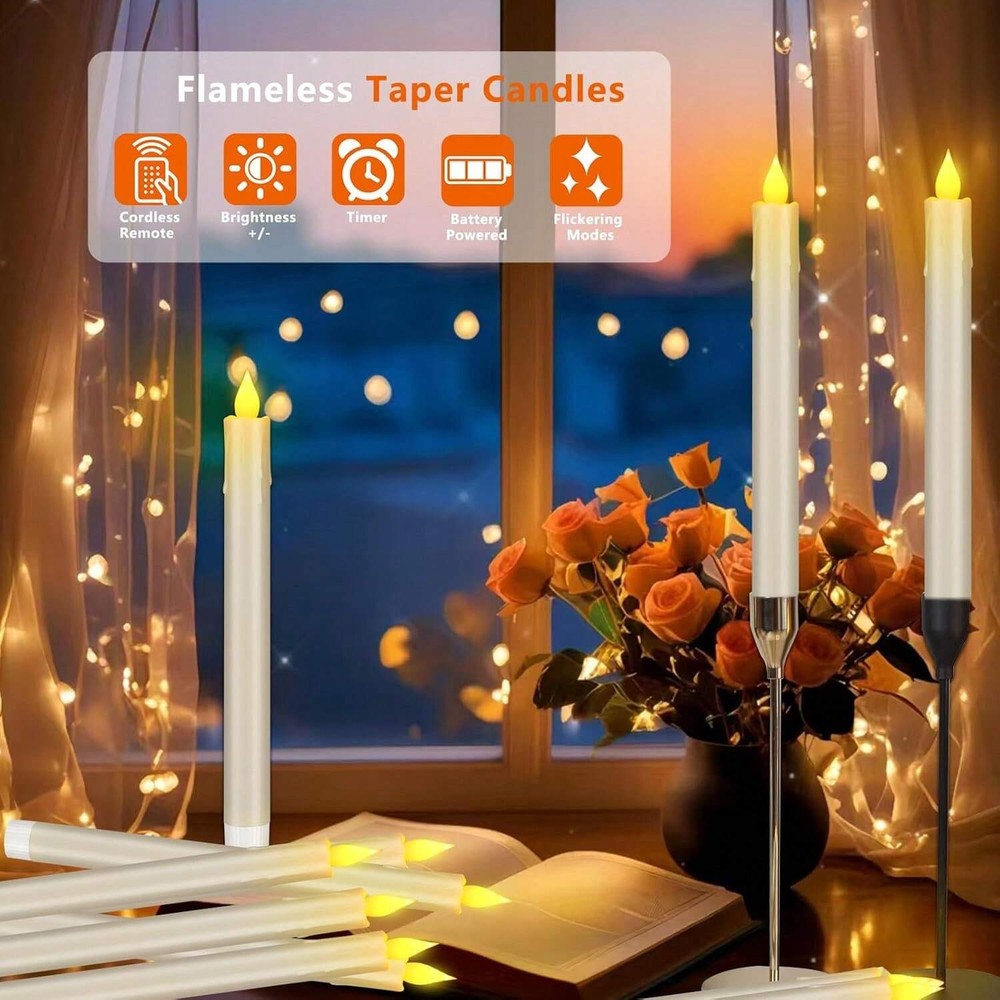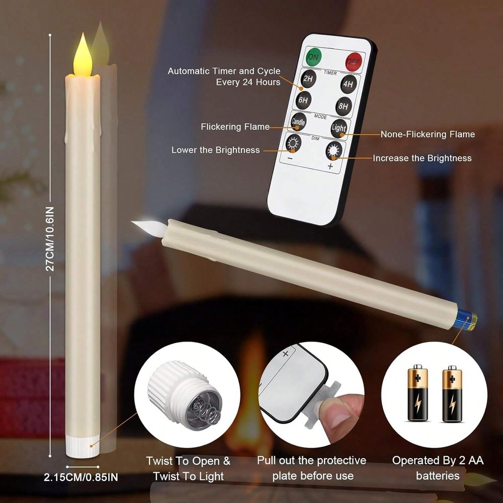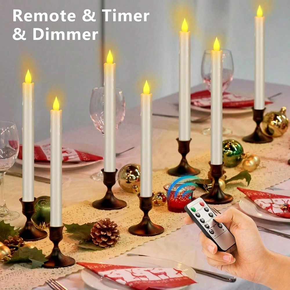 12 Pack 10.6 Inch Ivory Flameless Taper Candles with Remote Timer and Realistic Flickering LED Light