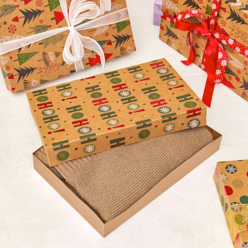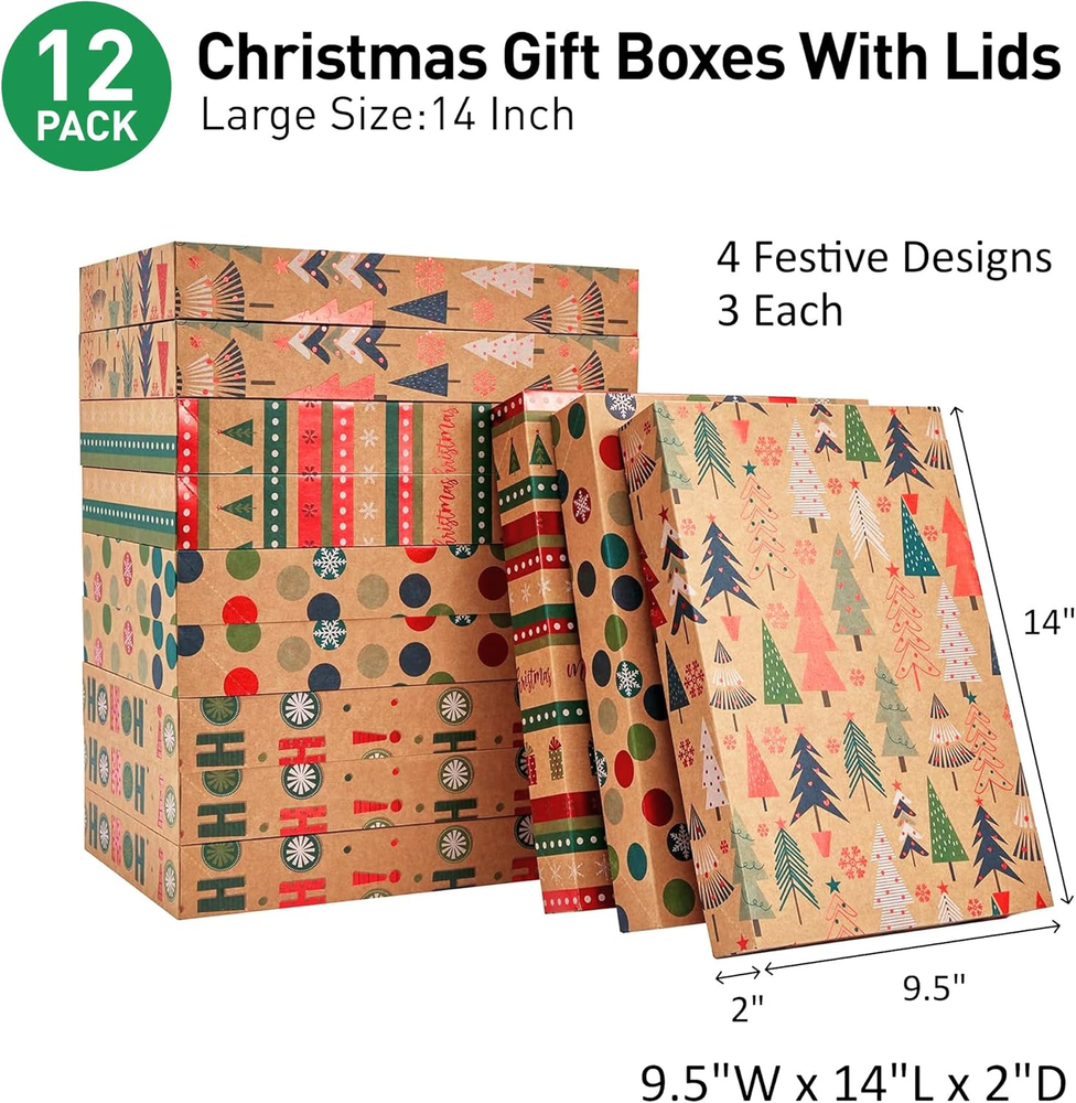 12 Pack 14" Brown Large Christmas Gift Boxes with Lids for Clothes Presents