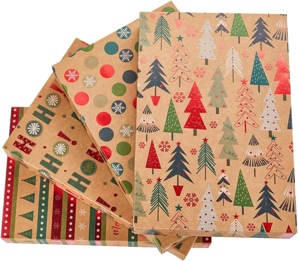 Sizes: 14" * 9.5" * 2" . 3 boxes for each design, 12 Christmas boxes in total. Four design : christmas tree,snow flakes, gift boxes,HOHOHO. These Sizes of Christmas holiday theme gift Boxes with lids are perfect for Christmas Gift, birthday party, holiday gift, Xmas present, and more. Product description SUNCOLOR Christmas Gift Boxes Add to Cart Add to Cart Add to Cart Add to Cart Price $14.99 $ 14 . 99 $14.99 $ 14 . 99 $14.99 $ 14 . 99 $15.99 $ 15 . 99 — Size 17"x11"x2.75" 14"x9.5"x2" 14"x9.5"x2" 14"x9.5"x2" 15"x9.5"x2" Color White Blue Brown Red Brown Dessign Solid Color Christmas tree Christmas tree,ornaments christmas wishes Solid Color Feature n/a Foil Decoration Foil Decoration Foil Decoration n/a Occasion All Occasion Christmas Christmas Christmas All Occasion SUNCOLOR Merry Christmas Gift Bags Add to Cart Add to Cart Customer Reviews 4.8 out of 5 stars 182 4.7 out of 5 stars 539 4.8 out of 5 stars 464 4.8 out of 5 stars 459 4.7 out of 5 stars 277 Price — $13.99 $ 13 . 99 $9.26 $ 9 . 26 — — Count 12 9 6 12 12 Size 9", 12" and 16" 6.3", 9" and 13" 9" 9", 12" and 16" 6" Dessign 6 3 3 6 4 Feature Glitter Decoration, Name Tags Assorted Sizes Glitter Decoration, Name Tags Glitter Decoration, Name Tags Foil Decoration, Name Tags Tissue Paper red, green, white, 36 sheets red, white, 18 sheets red, green, white, 12 sheets N/A N/A SUNCOLOR Merry Christmas Kraft Paper Gift Bags Bulk Add to Cart Add to Cart Add to Cart Customer Reviews 4.7 out of 5 stars 625 4.8 out of 5 stars 486 4.8 out of 5 stars 513 4.8 out of 5 stars 486 4.8 out of 5 stars 1,247 Price $19.99 $ 19 . 99 $21.99 $ 21 . 99 $16.99 $ 16 . 99 — — Count 24 30 24 30 24 Size 8.7", 10.6" and 13" 8.7" 8.7" 8.7" 8.7" Dessign 6 6 6 6 6 Feature Assorted Sizes Foil Decoration Foil Decoration Foil Decoration Foil Decoration Tissue Paper red, green, white, 24 sheets red, green, 30 sheets red, green, white, 24 sheets N/A N/A