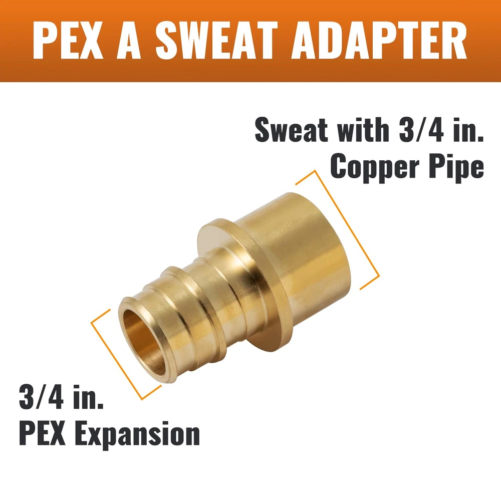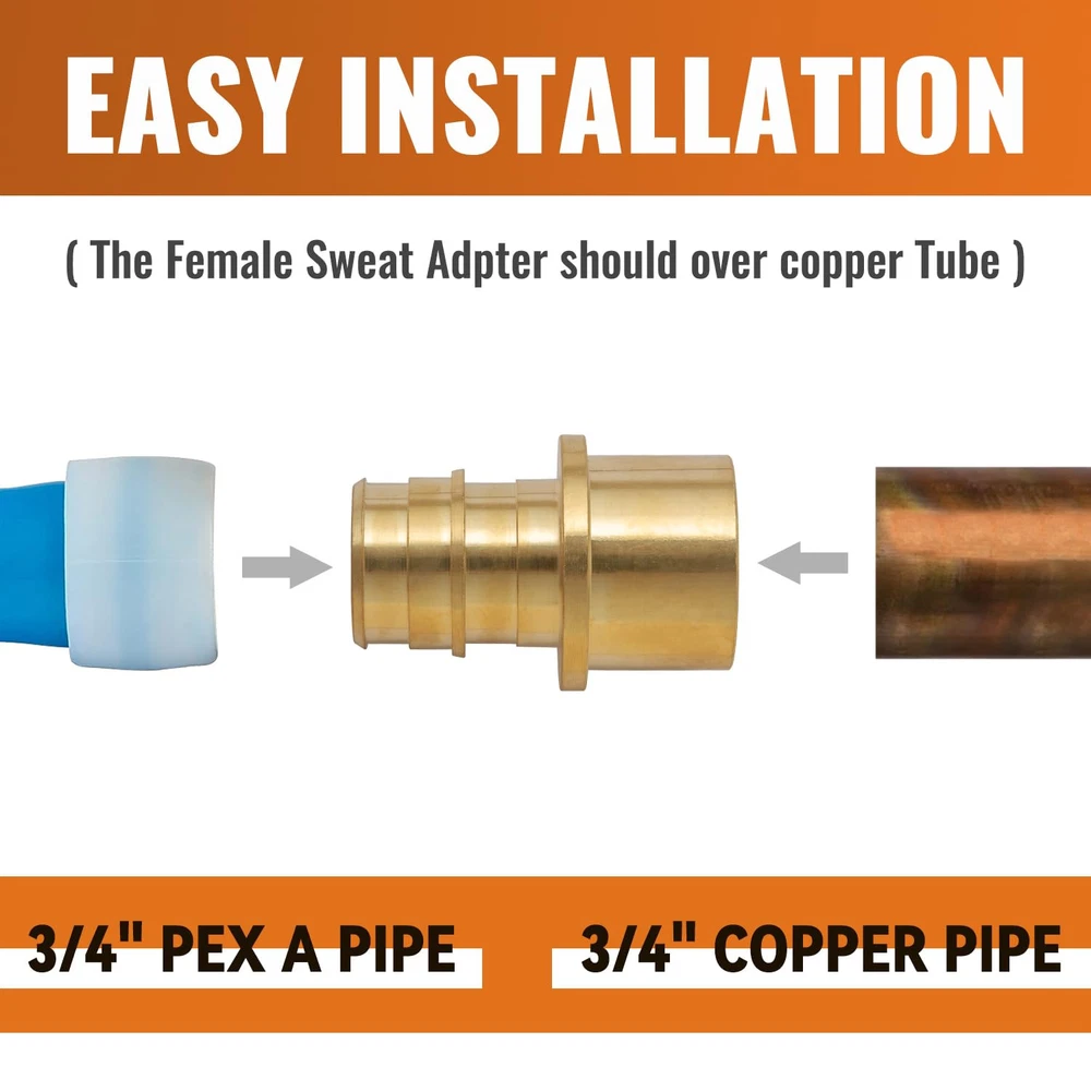 【Package Includes】: 3/4" Pex A Fittings Set includes 12pcs PEX A 3/4" x 3/4" Female Sweat Adapter 【Non-Pollution】: Lead free brass PEX A Female Sweat Adapter, comply with drinking water standard. ASTM F1960 NSF/ANSI 61 Certified. 【Extra-Long Service Life】: High-quality brass pex fittings, resists corrosion, rust and high temperature (32℉—200℉). 【Applications】: This can be used for PEX A pipes in plumbing jobs. Great for hot or cold water distribution and and hydronic heating systems. 【Products】: This Pex A Female Sweat Adapter 3/4" ONLY used for PEX A Tubing. ONLY For EXPANSION SYSTEM. Need to Order Pex Expander Tool + Pex Sleeves Separately.