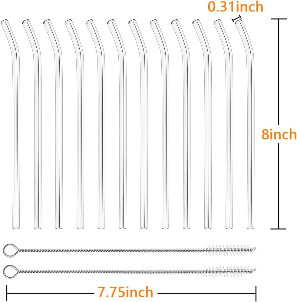 Thanks! 12 Pack Reusable Glass Straws - 8" x 8 MM, Bent Glass Drinking Straws with 2 ... 【Safe Drinking Straws】 Our glass straw are shatter resistant and can withstand high and low temperatures. You can enjoy hot and cold beverages and maintain a better taste! 【Borosilicate Glass Material】 High borosilicate glass material are lighter and more durable than ordinary glass, high temperature resistant and breakage resistant. It is also more transparent, suitable for making drinks and reuse. The 12 clear straws are perfect for your need for fresh color. 【Convenient Cleaning】 Simply rinse the reusable straws after use or place in the dishwasher. The 2 cleaning brushes can easily and thoroughly clean all liquids and solids in the straw. 【Eco Friendly Straw】 Unlike plastic straw, our glasses straw can be reusable and did not harm to the environment. Reusable glass straws have a higher level of protection for our health and living environment. Shipping We offer FREE shipping on all orders! We ship within Three business days of payment, usually sooner. We use a selection of shipping services such as UPS, FedEx, USPS etc. We only ship to the lower 48 states, no APO/FPO addresses or PO Boxes allowed. Local pickups and combined shipping options are not provided at this time. Return You can return a product for up to 30 days from the date you purchased it. Any product you return must be in the same condition you received it and in the original packaging. Please keep the receipt. Customer satisfaction is very important to us. If you have any problem with your order, please contact us and we will do our best to make you satisfied.