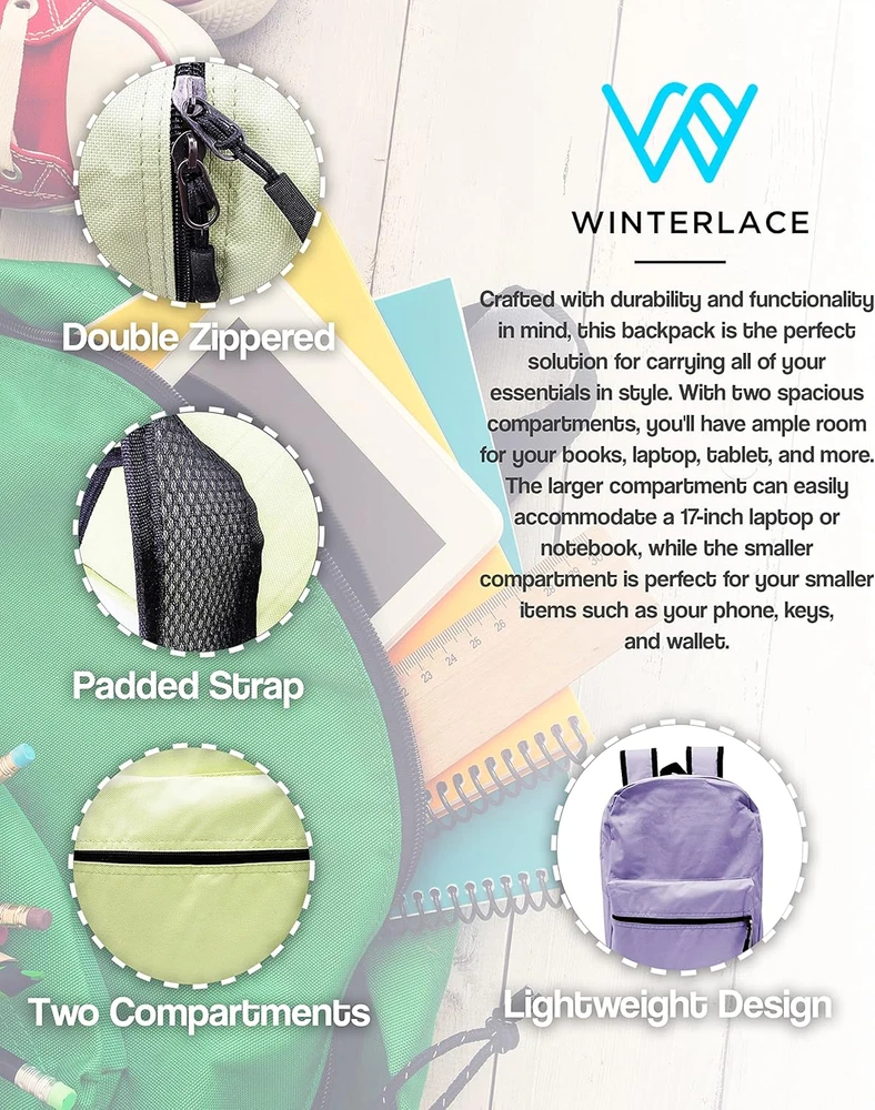 Store New Arrivals Add to Favorite View Feedback Contact 12 Pack Backpack, Bulk 17 Inch Lightweight Outdoor Travel Gym Corporate Events Bag (Assorted) Description Age Range Description Adult Capacity Total 12 Liters Number Of Items 12 Color Assorted Product Dimensions 6 x 12 x 17 inches Item Weight 7.52 pounds Department unisex-adult Units 12 Count 12 PACK BACK PACKS : Each pack includes 12 backpacks. Choose from a selection of stylish backpacks. Made perfect for a wide variety of activities including for work, travel, camping, hiking, trips, outdoors, summer , and much more. 17” BACKPACKS : Features a spacious main zippered compartment to store a wide variety of items including clothing, laptops, folders, and more! The top zipper features two zippers! Each zippered bag also features a front smaller zippered compartment for spare batteries, cameras, cell phones, and more. COMFORTABLE & STYLISH : Comfort is important, which is why these back packs were constructed with padded straps. The straps are adjustable, allowing for a fully customized feel! The backpack is also lightweight, providing a weightless and non-bulky feel. ZIPPERED BAGS : Made with durable polyester materia. Ease your mind by knowing that the backpack will withstand being thrown around or put on the ground. The polyester material is also easy to clean making this a great bag for various activities. BULK BACKPACKS : Each bulk pack includes 12 back packs. Makes a perfect gift or for corporate events and donating! These versatile and durable back packs are awesome for all season use, for leisure as well as work or travel. Measures approximately 12” (wide), 17” (tall), and 6” (depth). Product Description Bulk Backpacks If you're looking for a backpack that can hold all your essentials and more, look no further than our 17" backpack for all uses. The dual zippers make it easy to access your belongings from both sides of the backpack, ensuring that you can quickly grab what you need without having to search for it. Versatile These backpacks are perfect for various activities such as travel, camping, hiking, outdoors, summer, and more. Whether you need a reliable backpack for your next adventure or simply want to upgrade your style, this pack has got you covered. Reliable and Spacious These zippered bags are made to be durable, designed to withstand daily wear and tear, and provide ample space for clothing, water bottles, laptops, and other essentials. The backpack is also designed with comfort in mind, featuring padded shoulder straps to help with heavier loads. Bulk Pack of 12 Backpacks Choose from our packs of 12 backpacks available in a range of colors styles. Makes the perfect gift or for sharing! Measures approximately 12” (wide), 17” (tall), and 6” (depth). Located in Brooklyn, New York. Bringing our customers quality accessories to take on any season or occasion. Your satisfaction is our #1 priority Our wide range of products are all designed with comfort, affordability, quality and fashion in mind Luxurious Feel & Quality 12 BACKPACKS BULK PACK Each pack includes 12 backpacks , perfect for travelers, campers, hikers, and anyone who needs a reliable and stylish backpack for their daily activities. Our versatile and durable zippered bags are perfect for leisure as well as academic purposes. Measuring approximately 12” (wide), 17” (tall), and 6” (depth), these backpacks are the perfect size to fit all your essentials without feeling too bulky or heavy. Dual-Compartment Padded Adjustable Straps Versatile & Durable Lightweight ABOUT US We offer the best prices around on high quality products. Our E-store includes media such as books, movies, music and games while offering electronics, toys, sporting apparel, clothing, tools, general home, garden items and more. SHIPPING We are always working hard to ensure your package arrives as soon as possible. Please understand that some factors like weather, high postal traffic, and the performance of shipping companies are outside of our control. We offer free shipping to the lower 48 states and ship within 2 business days of payment, usually sooner. We do not accept P.O. Boxes. Please provide a physical address. For shipping outside of the continental USA, we only use eBay's Global Shipping Program.The item is shipped to KY and then sent to the rest of the world. International customers are responsible for all duties and taxes. Continue to check out in order to calculate costs for shipping the item to your country. Messages regarding eBay's Global Shipping Program MUST be directed at eBay EXCLUSIVELY. RETURNS We offer a 30-Day Return Policy on items which you are not completely satisfied with. You have the option for a full-refund or an exchange of the item. No returns are available on items shipped outside of the USA. PAYMENT We accept PayPal. CONTACT US This page content is yet to come Please ad us to your favorite seller and visit again later Thank You CUSTOMER SATISFACTION We try our very best to make sure every customer is completely satisfied. If there's a problem, message us! We're happy to help. WE ACCEPT Copyright © 2021 AutoDS. | All Rights Reserved