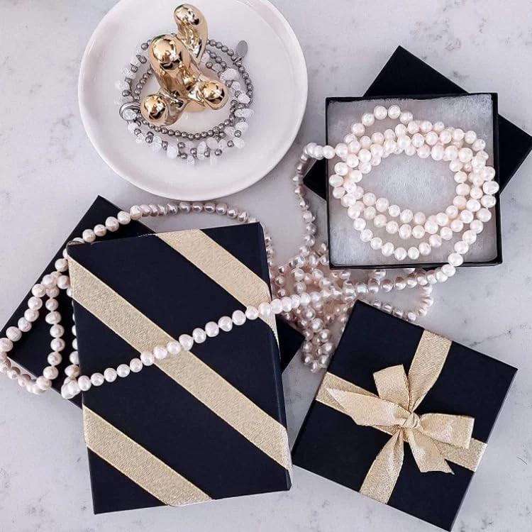 These boxes are perfect for my Etsy shop! The matte black looks so classy and professional. Love that they come with cotton filling to protect delicate jewelry. Customers always comment on how nice the packaging looks. Definitely worth buying in bulk!