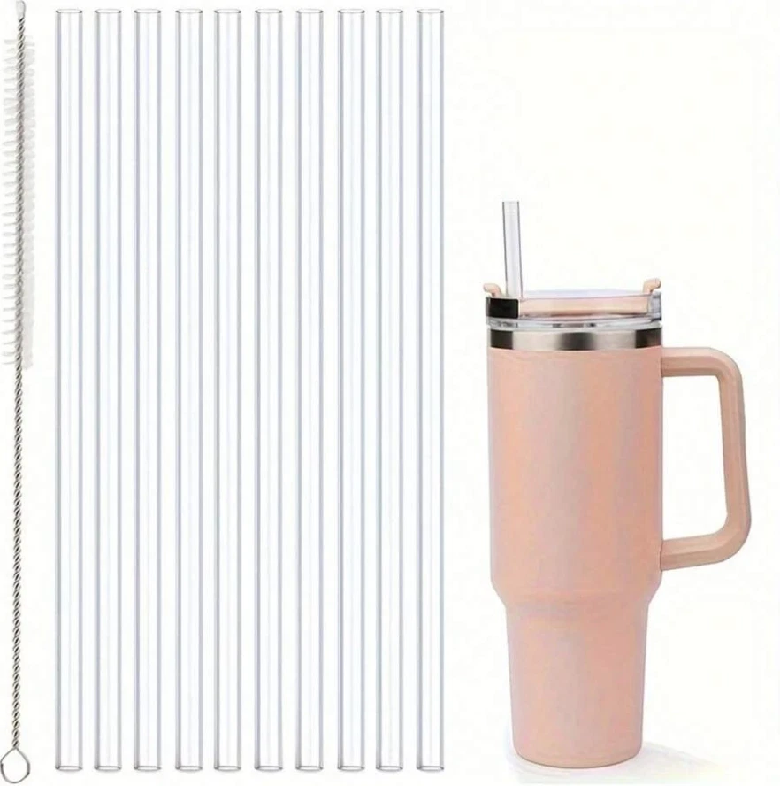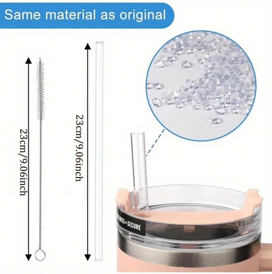 Elevate Your Hydration: Perfect Fit Reusable Straws for Stanley Tumblers (USA) Upgrade your drinking experience with our premium reusable straws, designed specifically for Stanley Tumblers. Key Benefits: Precision Fit: Meticulously crafted to perfectly match your Stanley Adventure Quencher Tumbler (30oz & 40oz), ensuring a snug fit and leak-proof seal. Eco-Friendly & Sustainable: Made from high-quality, BPA-free food-grade plastic, these straws are a reusable alternative to harmful single-use straws. Exceptional Durability: Built to withstand daily use and maintain their shape and clarity over time. Effortless Cleaning: Includes a convenient cleaning brush designed to reach the entire length of the straw, ensuring thorough hygiene. Versatile Use: Suitable for a wide range of beverages, from water and smoothies to protein shakes and iced coffee. Experience the Difference: Enjoy a cleaner, healthier, and more eco-conscious way to hydrate. Reduce your reliance on single-use plastic straws and minimize your environmental impact. Enhance your Stanley tumbler experience with these essential accessories. Order your set of reusable straws today and savor every sip! Here's what you'll get: 12 x Reusable Straws (12.5/9 inches) 1 x Cleaning Brush Invest in a sustainable lifestyle and elevate your hydration routine with our premium reusable straws. Note: For optimal fit, please ensure your Stanley tumbler is compatible with the specified dimensions. Customer Service: Have questions before you buy? We're here to help! Feel free to email us and we'll do our best to assist you. Shop with Confidence: Thanks again for shopping with us and feel free to check out our growing collection.
