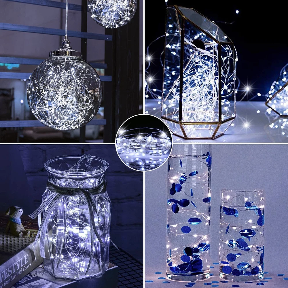 1 【Premium Fairy Lights】The fairy lights battery operated are made of 7 ft silver wire and have 20 LED light beads that can emit a bright light, each fairy light includes 2 x 2032CR batteries, the battery life is 48 hours, high-quality battery operated string lights do not have color difference phenomenon. 【Flexible Silver Wire】This fairy lights battery operated have 7 ft of sturdy silver wire, silver wire can be easily bent, you can assemble the fairy lights arbitrarily and wrap them around the place you want to decorate, the silver wire of the battery operated string light has IP65 waterproof, you can put the twinkle light into a water cup filled with water to make a beautiful water cup light. 【Safety】The fairy lights use 2 x 2032CR batteries, fairy lights battery operated can work at low voltage, so the twinkle lights emit a small amount of heat when working, the silver wire of the fairy lights for bedroom is also very robust and has great electrical conductivity, all these elaborate designs reflect our pursuit of safety. 【Easy to Use】This fairy light uses a new battery box technology, battery replacement has become easier, directly opening the battery box back panel and you can easily replace the battery, fairy lights battery operated using a simple switch design, just pull out the insulating piece of the fairy lights battery cover and open the switch to use. 【Perfect Decoration】The battery operated string lights have a lightweight and small size, you can easily hide the fairy lights in the decoration, the great security and waterproof performance of the fairy light allow you to put them anywhere, these perfect fairy lights battery operated are suitable for Christmas, bathrooms, festivals, weddings, twinkle lights can be used for holiday decorations to create a lively holiday atmosphere.