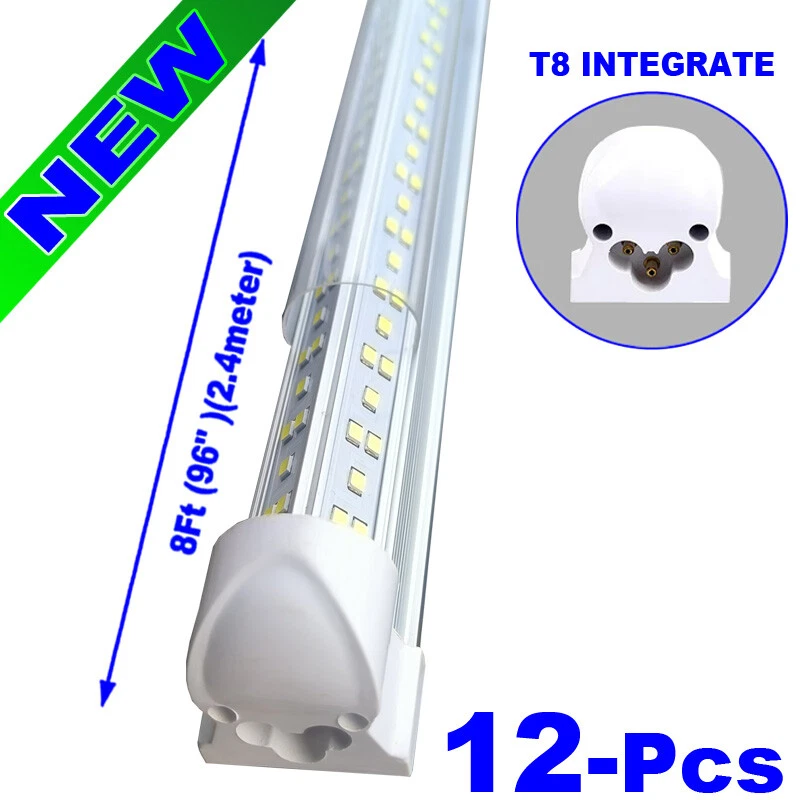 FAST DELIVERY - Ship from New Jersey or Los Angeles Warehouse via FedEx , 3-7 Days Delivered Your Door . SCIENTIFIC DESIGN - 8Ft LED Shop Lights Fixture is Made of 6500K Cold White SMD2835 LED Chip ,Plastic Clear Cover , Aluminum Bracket Housing ,and AC85-277V Constant Current Driver . It can work in -68F to 120F Temperature Conditions EASY INSTALLATION - The Integrated Tube Fixture Can be Install on Wall or Ceiling ,Easily Replace Traditional Fluorescent Tube Bulb . Plug and Play , Free Accessories (Power Cords, Connector , Extension Cords , Clip and Screw ) Come with Tube Lights Together WIDE APPLICATION - Linkable 8Ft Bulbs Widely Used in Garage Ceiling , Barbershop , Schools, Hospitals Basement , Factory Warehouses , Supermarkets Cooler Door , Offices, Shops,Hotels, etc 12 Pack LED Shop Light 8ft 144W Ceiling Fixture 6500K Super Bright White 18000l FAST DELIVERY - Ship from New Jersey or Los Angeles Warehouse via FedEx , 3-7 Days Delivered Your Door . SCIENTIFIC DESIGN - 8Ft LED Shop Lights Fixture is Made of 6500K Cold White SMD2835 LED Chip ,Plastic Clear Cover , Aluminum Bracket Housing ,and AC85-277V Constant Current Driver . It can work in -68F to 120F Temperature Conditions EASY INSTALLATION - The Integrated Tube Fixture Can be Install on Wall or Ceiling ,Easily Replace Traditional Fluorescent Tube Bulb . Plug and Play , Free Accessories (Power Cords, Connector , Extension Cords , Clip and Screw ) Come with Tube Lights Together WIDE APPLICATION - Linkable 8Ft Bulbs Widely Used in Garage Ceiling , Barbershop , Schools, Hospitals Basement , Factory Warehouses , Supermarkets Cooler Door , Offices, Shops,Hotels, etc