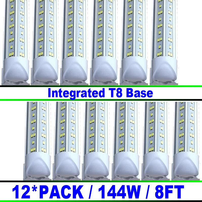 FAST DELIVERY - Ship from New Jersey or Los Angeles Warehouse via FedEx , 3-7 Days Delivered Your Door . SCIENTIFIC DESIGN - 8Ft LED Shop Lights Fixture is Made of 6500K Cold White SMD2835 LED Chip ,Plastic Clear Cover , Aluminum Bracket Housing ,and AC85-277V Constant Current Driver . It can work in -68F to 120F Temperature Conditions EASY INSTALLATION - The Integrated Tube Fixture Can be Install on Wall or Ceiling ,Easily Replace Traditional Fluorescent Tube Bulb . Plug and Play , Free Accessories (Power Cords, Connector , Extension Cords , Clip and Screw ) Come with Tube Lights Together WIDE APPLICATION - Linkable 8Ft Bulbs Widely Used in Garage Ceiling , Barbershop , Schools, Hospitals Basement , Factory Warehouses , Supermarkets Cooler Door , Offices, Shops,Hotels, etc 12 Pack Led Shop Light 8 Foot 144W 8Ft LED Tube Light T8 Integrate 4 Row Fixture FAST DELIVERY - Ship from New Jersey or Los Angeles Warehouse via FedEx , 3-7 Days Delivered Your Door . SCIENTIFIC DESIGN - 8Ft LED Shop Lights Fixture is Made of 6500K Cold White SMD2835 LED Chip ,Plastic Clear Cover , Aluminum Bracket Housing ,and AC85-277V Constant Current Driver . It can work in -68F to 120F Temperature Conditions EASY INSTALLATION - The Integrated Tube Fixture Can be Install on Wall or Ceiling ,Easily Replace Traditional Fluorescent Tube Bulb . Plug and Play , Free Accessories (Power Cords, Connector , Extension Cords , Clip and Screw ) Come with Tube Lights Together WIDE APPLICATION - Linkable 8Ft Bulbs Widely Used in Garage Ceiling , Barbershop , Schools, Hospitals Basement , Factory Warehouses , Supermarkets Cooler Door , Offices, Shops,Hotels, etc