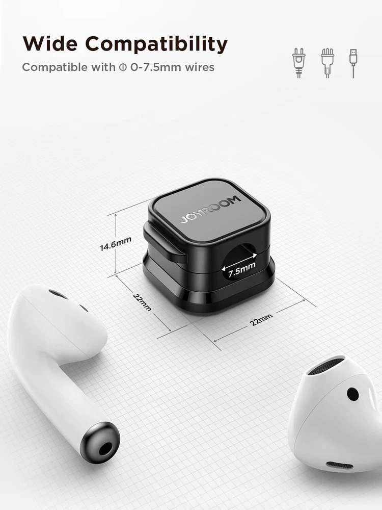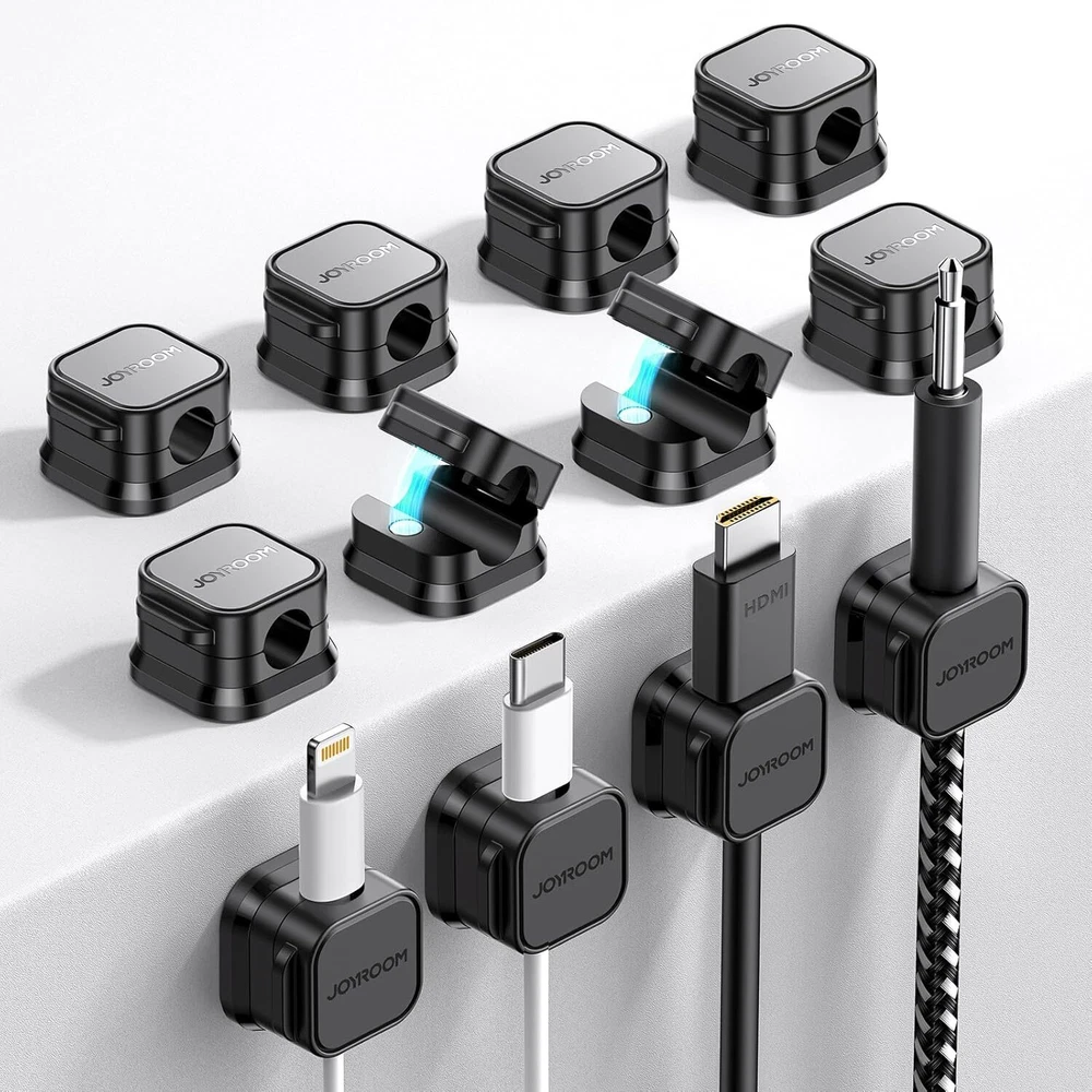 12 Pack Magnetic Cable Management Clips, Phone Electric Charging Cord 12-pack Product Details Manufacturer: JOYROOM Part Number: JR-ZS417 Item Weight: 2.39 ounces Product Dimensions: 0.87 x 0.87 x 0.58 inches Country of Origin: China Item model number: 368 Color: 12-pack Style: Modern Material: Acrylonitrile Butadiene Styrene Installation Method: Self-Adhesive Item Package Quantity: 1 Special Features: Self-locking Usage: Home Office Bedside Table Nightstand Kitchen Appliance Outdoor Batteries Included?: No Batteries Required?: No Brand: JOYROOM Color: 12-pack Material: Acrylonitrile Butadiene Styrene Style: Modern Installation Type: Self-Adhesive 7.5 mm Perfect Cable Slot Diameter: Diameter of 0.3 inches (7.5mm) can hold most cables, such as phone charging cables, USB cords, HDMI thick cables, computer power cords, etc. Besides that, the slot diameter of 7.5mm can perfectly hold a charging head as small as the iPhone original silicone charging cable without falling off, and the held cable can be pulled out smoothly for use Magnetic Clamp Design: The unique magnetic opening and closing cable clip design allows you to place and remove cables with only one hand. Unlike other cord holders on the market, Joyroom cable organizer uses a sophisticated 60° rotating shaft and magnetic locking cord design, helping you easily snatch a cord off or easily add a cord easily Enhanced No-Residue Acrylic Adhesive: The Upgraded Acrylic Adhesive sticky pad allows the cable organizer to stick firmly to almost any flat& clean surface, such as wooden tables, glass, ceramic tiles, etc. Meanwhile, the transparent removable acrylic adhesive pad will not damage your desktop, wall, no residue left after removal. A replacement stick pad is also included in the box, making it possible to reuse the cord holder Makes Your Cables Organized: Joyroom cable Organizer could hold cables in place firmly and keep them off the floor. More importantly, the 6-pack set allows you to keep cords toward neat traces as you wish, such as setting them on the office desktop, tableside, table corner, wall, or car dashboard Thoughtful Details: The ultimate width of 0.87 inch cord holder allows it to be firmly fixed in most narrow spaces. Joyroom cable organizer does not take up too much sticking area, and it can be perfectly hidden in any small corner you care about. [Kindly Installation Tips: Please clean the desired surface without dust before sticking, and keep pressing for 30 seconds to enhance the adhesion of the sticky pad. Highly recommend waiting for 12-24 hours for better use] Joyroom Business Care Never Stop: Feel relax to talk with Joyroom support team. We 100% promise to address your issue within 24 Hours