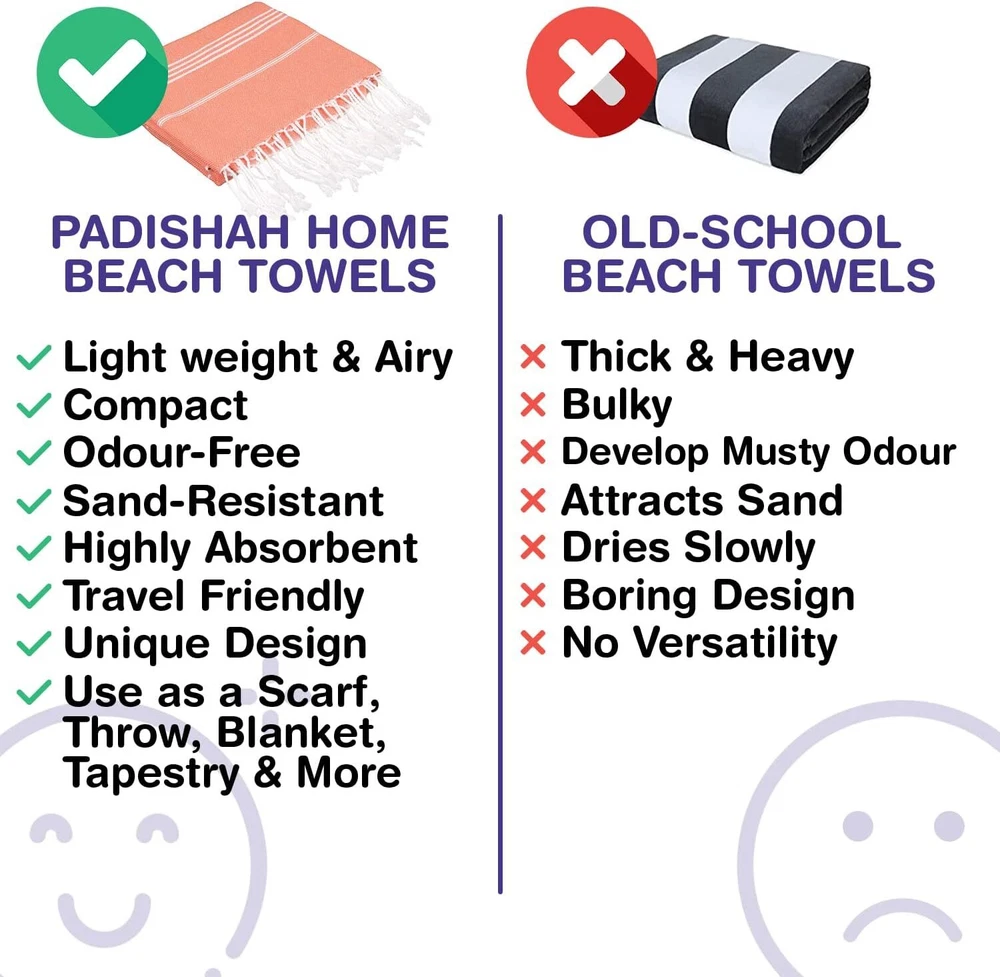 Size: Pack of 12 Color:Orange Brand:PADISHAHHOME Towel form type:Beach Towel Age Range (Description) Adult,Kid Material:Cotton About this item TRAVEL LIGHT, DRY FAST: Elevate your travel experience with our refined Turkish towels. Thinner than standard terrycloth yet equally absorbent and astonishingly compact, they slide easily into any bag. Perfect for post-shower or beach use, our towels merge a space-saving design with reliable absorption, ensuring comfort during every adventure. FRESHNESS REIMAGINED: Say goodbye to damp odors and prolonged drying times. Our cute beach towels are celebrated for their quick-drying abilities, perfect for beach outings or humid environments. They dry swiftly, promoting eco-friendly energy use while maintaining a fresh, odorless state. ECO-LUXURY IN EVERY TOUCH: Farewell to the days of rough towels. At PadishahHome, comfort meets sustainability. Our sumptuous Turkish cotton, gentle as a caress, is sourced responsibly from Turkey’s heartland. Dyed with OEKO-TEX standard materials, our extra-large pool towels blend indulgent softness with ecological mindfulness. VERSATILITY REDEFINED: Our towels transcend traditional boundaries. Crafted with a unique design, they effortlessly shed sand, making them ideal for a beach day, yoga session, or a stylish wrap. Available in 25 vibrant shades, these towels are not just an accessory but a statement. GIFTING MADE SIMPLE: Versatile and durable, these quick-drying, lightweight towels are the perfect present for any occasion. Whether it's a birthday, housewarming, or a special treat, their blend of practicality and style suits everyone’s needs. Choose from our range of colors and patterns to add flair to beach days, picnics, or camping adventures.