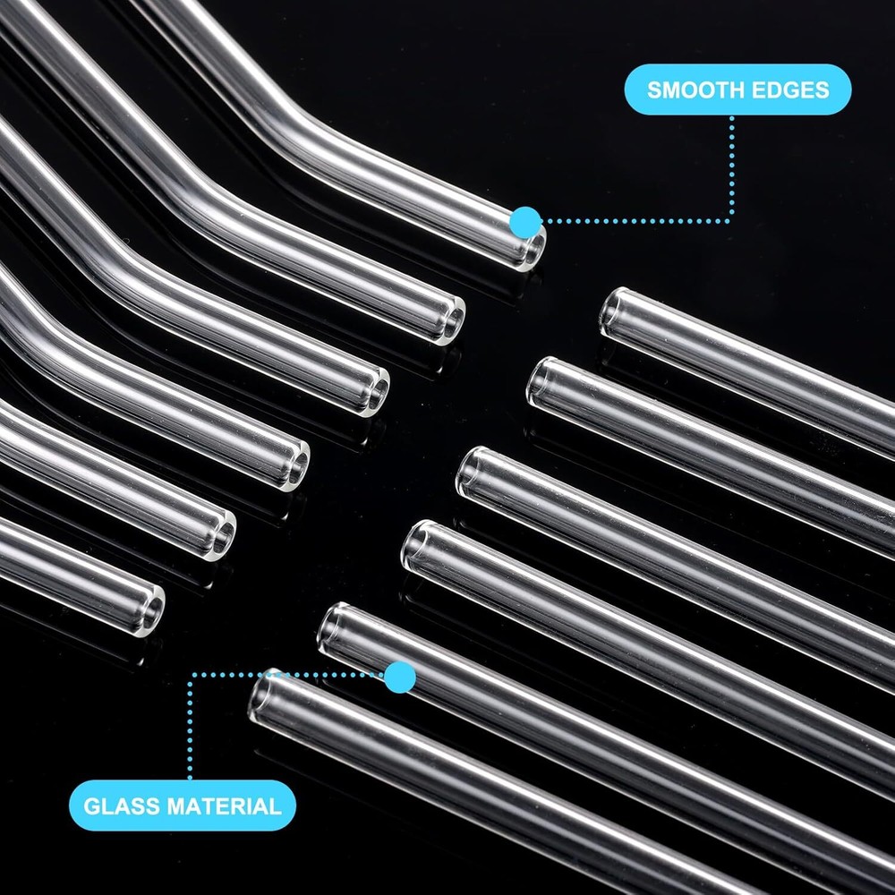12 Pack Reusable Glass Straws - 8" x 8 MM, 6 Bent Glass Drinking Straws and 6 Straight Clear Glass Straws with 2 Cleaning Brushes, Thin Glass Straws for Smoothies, Milkshake, Frozen Drinks, Tea, Juice 【Safe Drinking Straws】 Our glass straw are shatter resistant and can withstand high and low temperatures. You can enjoy hot and cold beverages and maintain a better taste! 【Borosilicate Glass Material】 High borosilicate glass material are lighter and more durable than ordinary glass, high temperature resistant and breakage resistant. It is also more transparent, suitable for making drinks and reuse. The 12 clear straws are perfect for your need for fresh color. 【Convenient Cleaning】 Simply rinse the reusable straws after use or place in the dishwasher. The 2 cleaning brushes can easily and thoroughly clean all liquids and solids in the straw. 【Eco Friendly Straw】 Unlike plastic straw, our glasses straw can be reusable and did not harm to the environment. Reusable glass straws have a higher level of protection for our health and living environment. 【Excellent Customer Service】We guarantee that our reusable glass straws products are carefully selected. If you have any question with our products, please contact us, we will respond within 24 hours. 100% Safe & Healthy Straws Clear Glass Straws Easy to Clean After-Sales Promise To ensure your shopping experience, please contact us immediately if you receive your order and find: Missing items Wrong items delivered Damaged products Any other issues We promise: 24-Hour Quick Response Our customer service team will follow up on your message within 24 hours to resolve the issue promptly. Professional Solutions Missing/Wrong Items: Free replacement or fast refund after verification. Damaged/Defective Products: Free new replacement or full refund. Other Inquiries: Dedicated support until the problem is fully resolved. No Negative Reviews or Disputes We value your feedback and aim to resolve all issues through communication first. Please trust that your satisfaction is our top priority! Friendly Reminder: Please check the packaging for damage upon delivery and take photos if any issues are found. We’re here to help you!