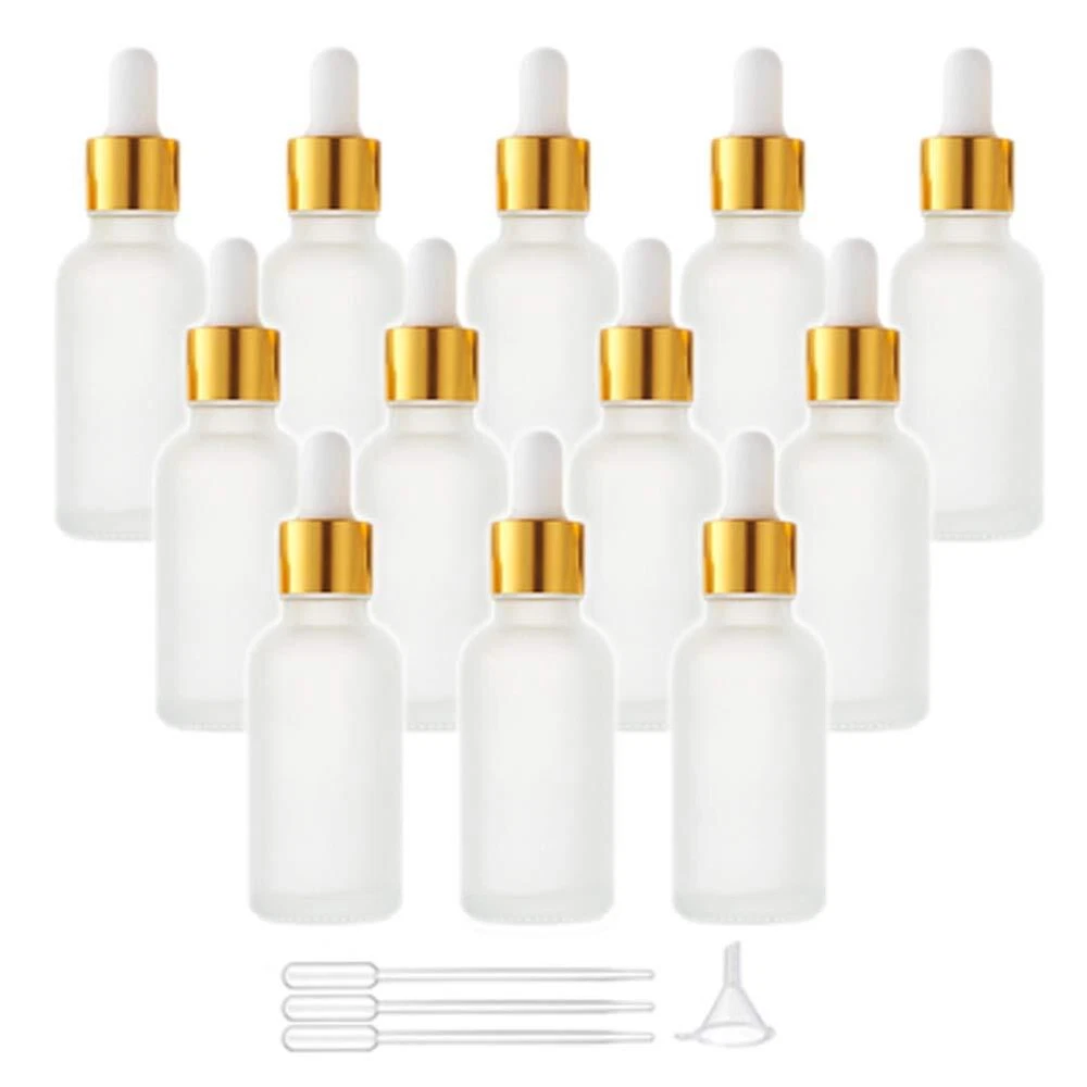 12 Pack Set Glass Dropper Bottles With Golden Caps Frosted Glass Vials Essent...