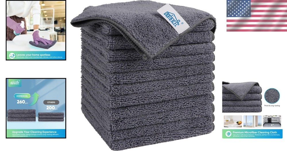 12-Pack Grey Microfiber Cleaning Cloths 12.5x12.5 1200 GSM High-Performance