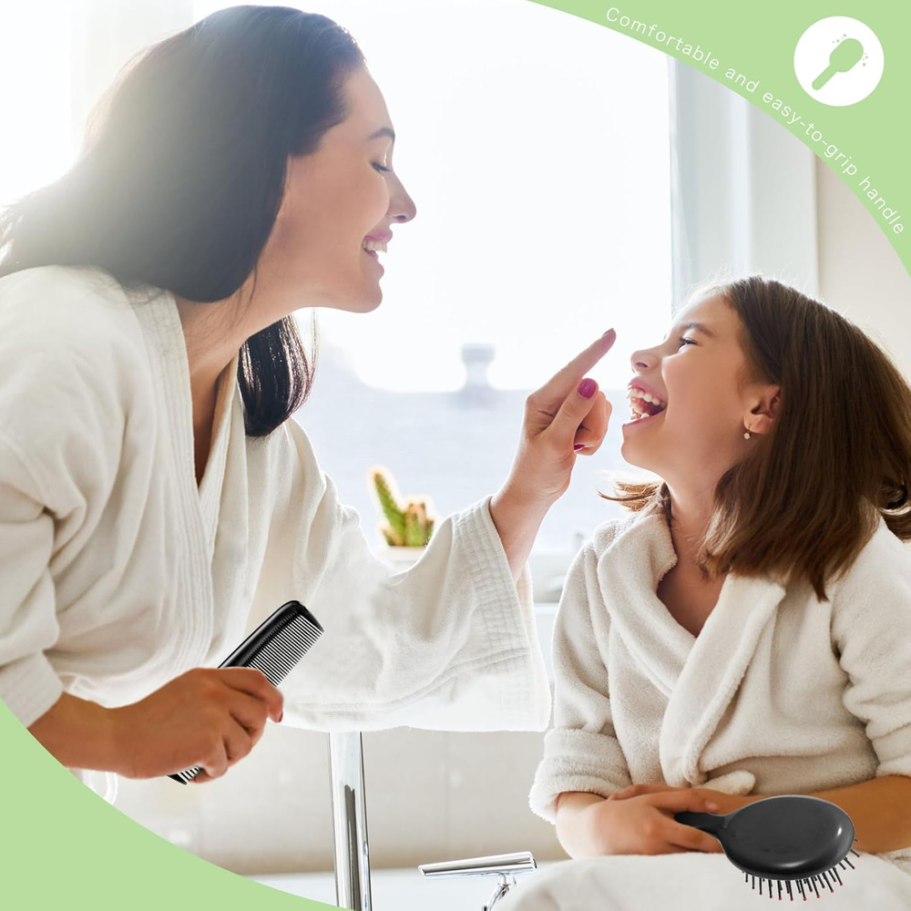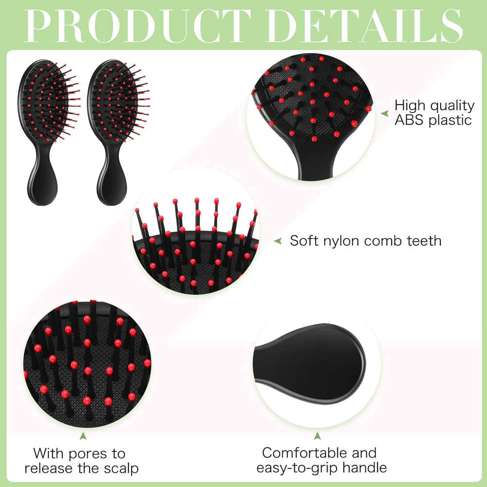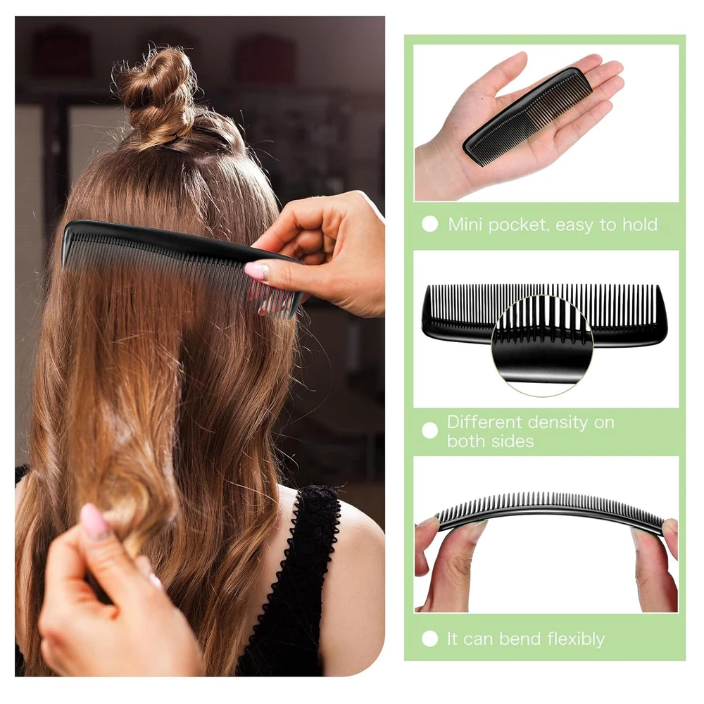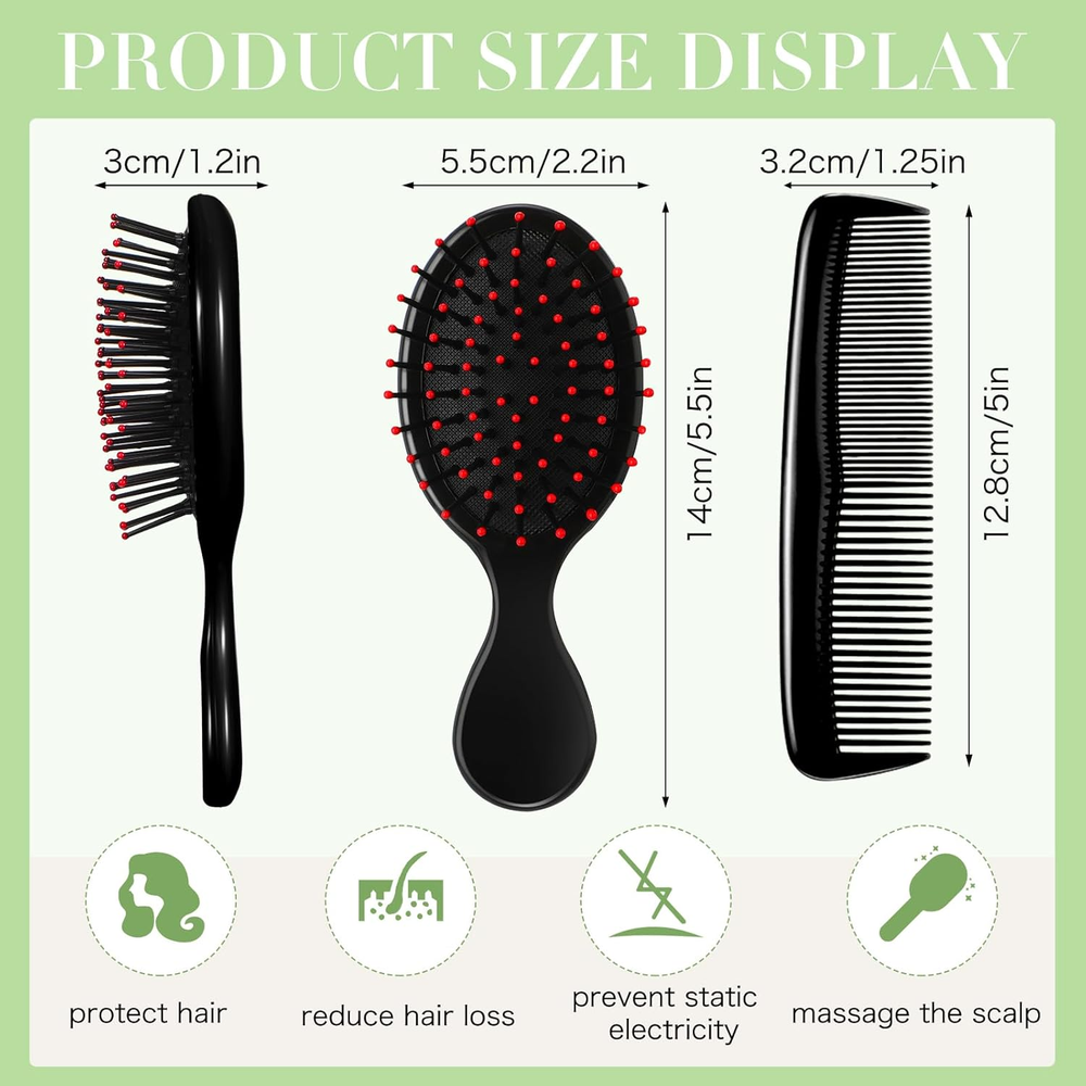 What's Contained in the Package: you will receive 12 pieces of hair combs for women in 2 different styles, including 6 pieces of detangler mini hair brushes and 6 pieces of plastic fine wide hair combs in black, enough quantities to satisfy your daily using needs for hairstyling Reducing Hair Knots: the pocket comb adopts soft air cushion teeth, which won't tear or pull out tangles, and easily slides through your hair, gently removing tangles; Plastic hair combs combine with fine and wide teeth, and thus you can choose to use the style you like Fitting Most Hair Types: the toddler hair brush is designed with ventilation holes, and it has certain elasticity, comfortable to use, suitable for various hairstyles, such as wet, dry, straight, curly and short hair, keeping your hair well organized Withstanding Long Term Use: the small hair brush set is mainly made of reliable plastic material, not easy to fade or break, strong and sturdy, and you can wash and dry it if it gets dirty, which can accompany you for a long time Portable and Handy: the detangle brush is compact and mini, not occupying much space, and you can place it in your makeup pouches or even your pockets, convenient to take along when you are on vacation or business trips Product description
